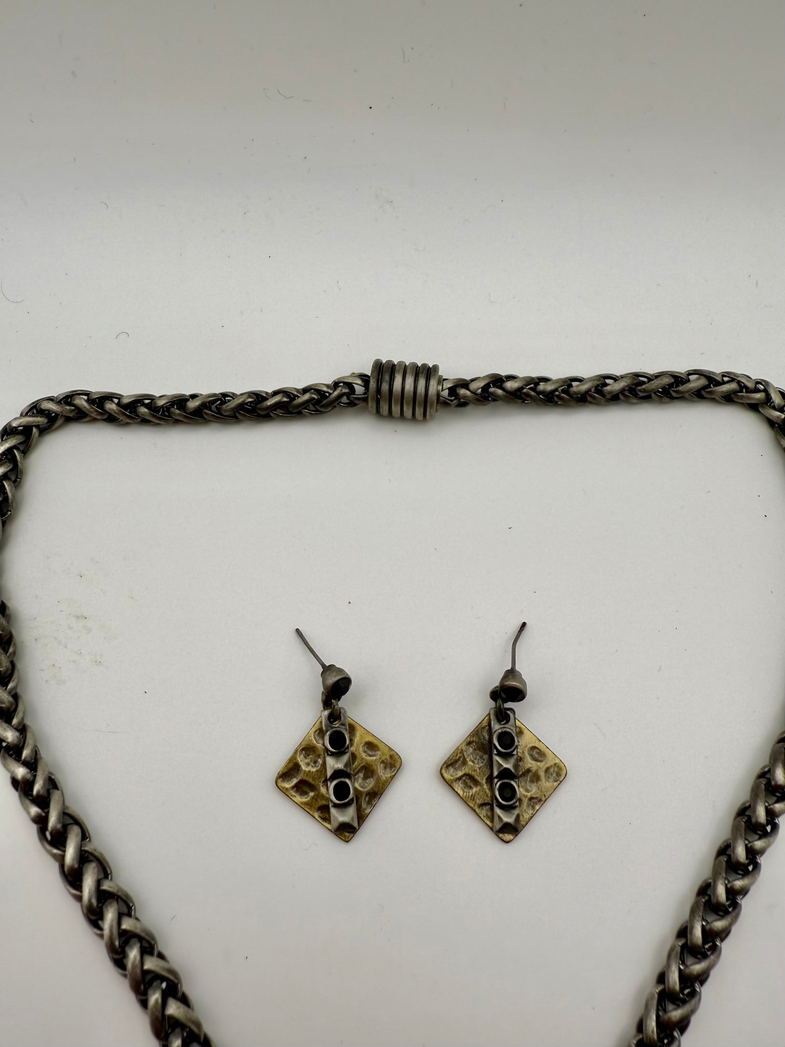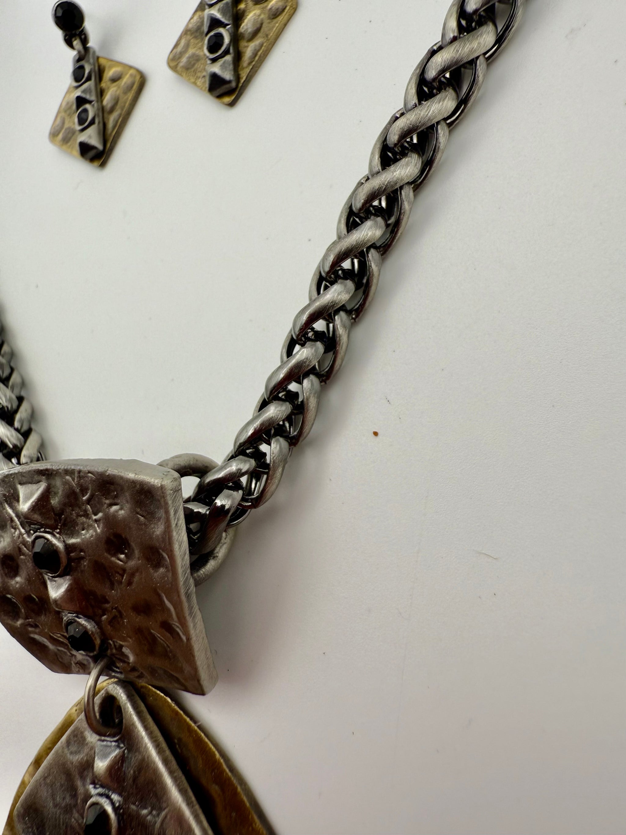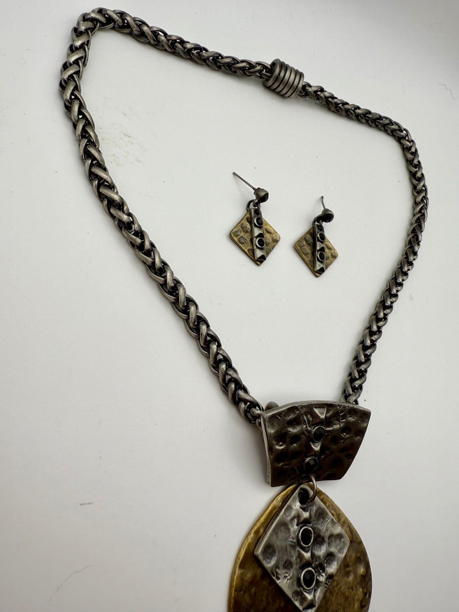 This is a mixed-metal hammered pendant necklace and matching earrings Set