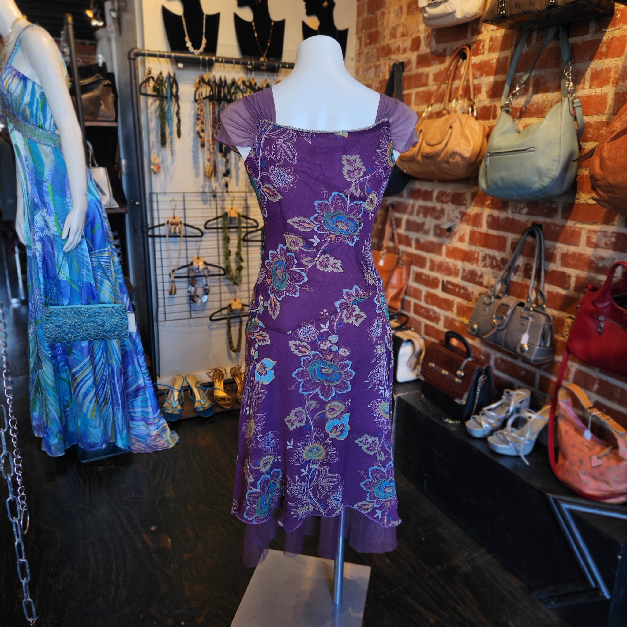 Y2K Purple Paisley Dress is decked out in details and lined asymmetrically with embroidery and sequins. A fairy dream!