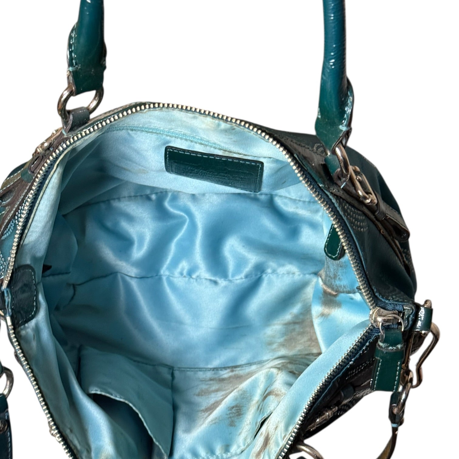 ● Sateen with silver tone hardware
