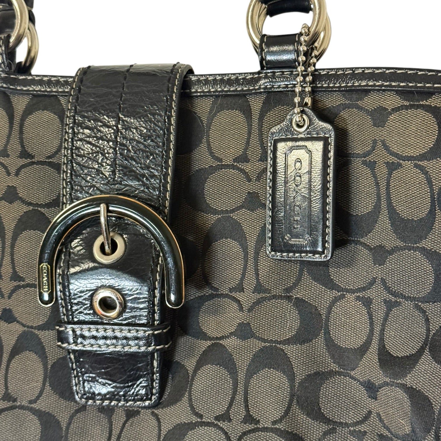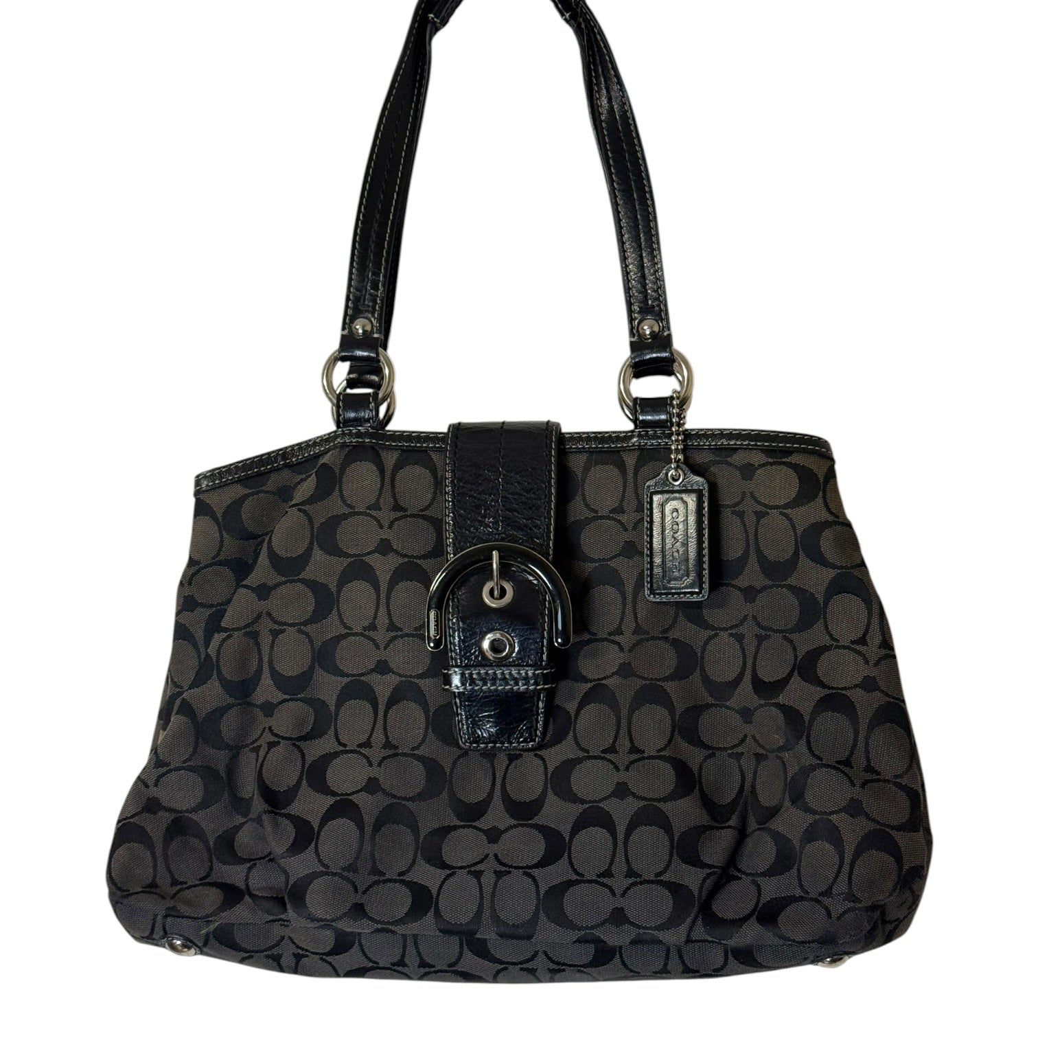 ● Custom twill lining. Silver tone hardware. Coach hang tag.