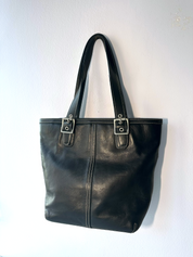 Smooth black leather Hampton shoulder tote bag by Coach.