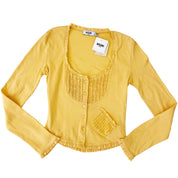 New with original tags attached! Yellow button-front top with the sweetest frilly ruffle details!