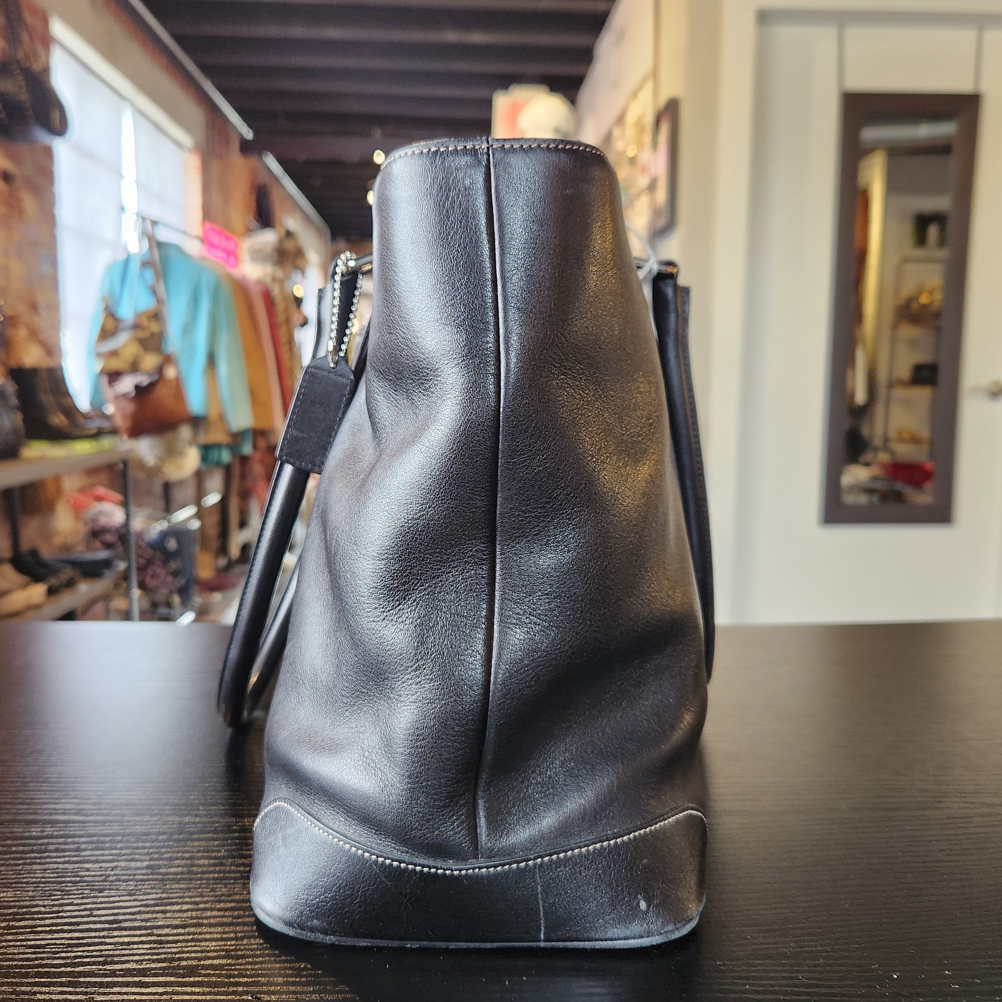 The most perfect Coach black suede school girl bag, has enough room to fit a computer and more.