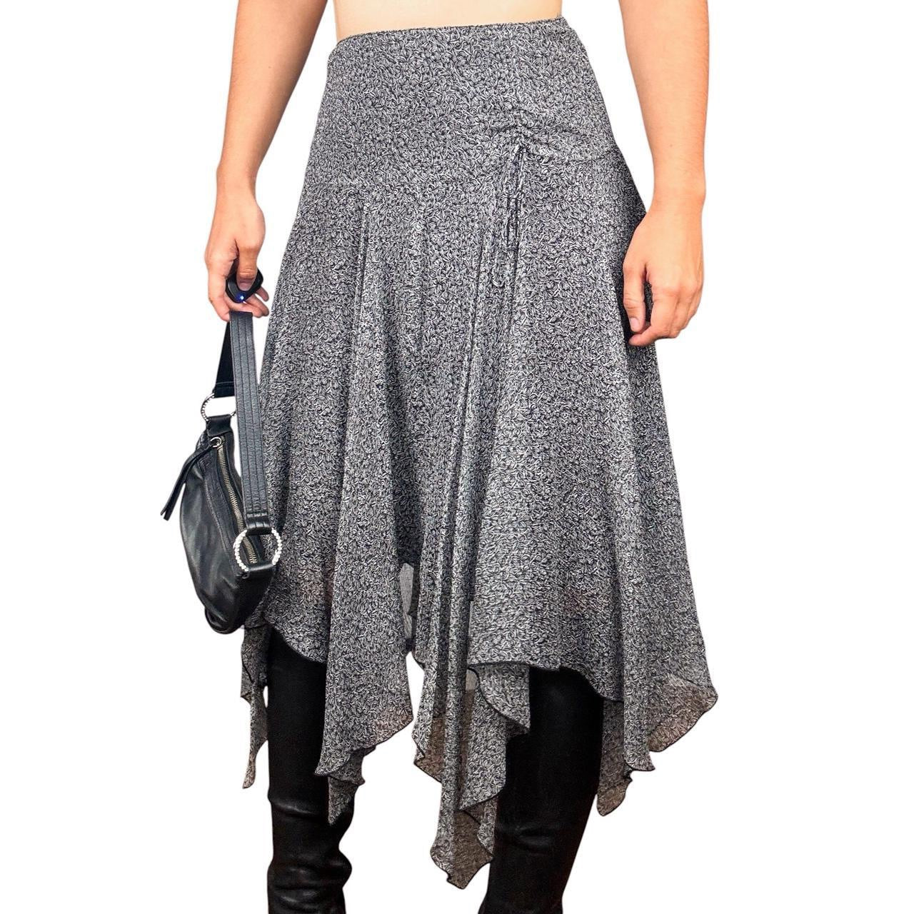100% silk skirt with elegant gathered drawstring detail. Classic & versatile black & white floral print. Side zip. No flaws!