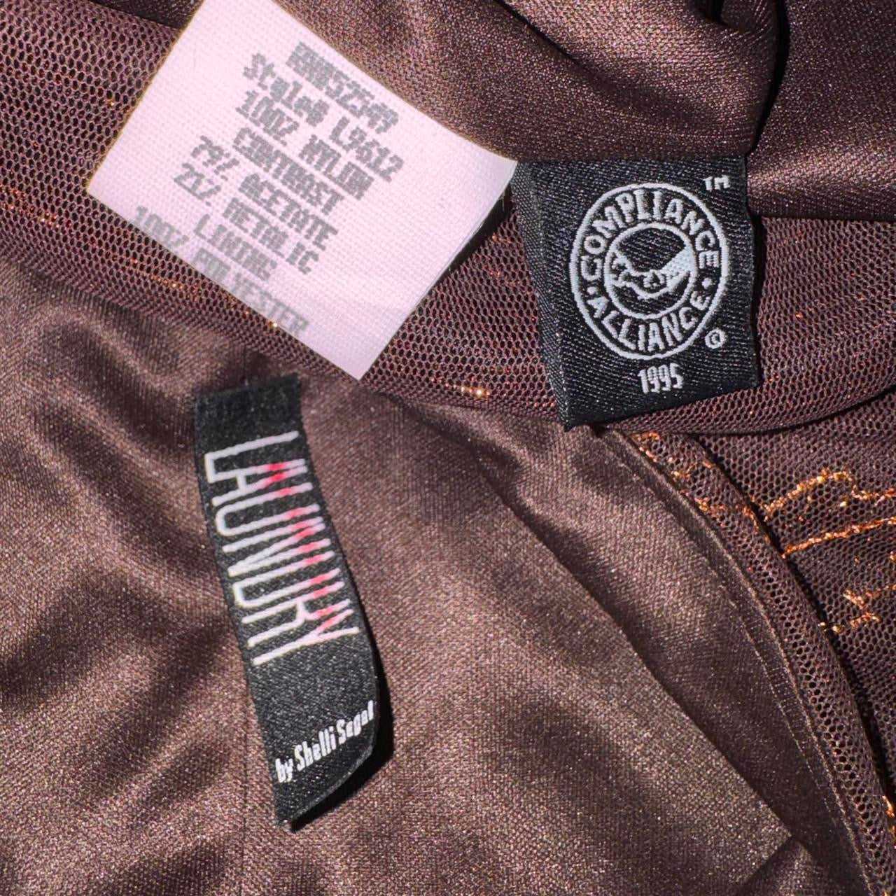 Sleek chocolate brown 90s dress featuring a shimmery bronze mesh overlay. Whimsical embroidered leaf design. Square neck, fitted silhouette. Excellent condition.
