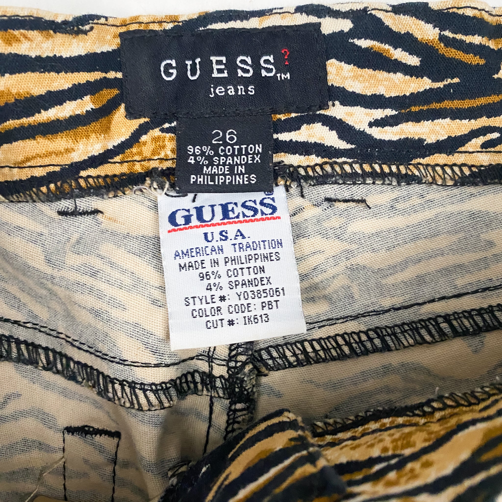 90’s guess tiger print pants. mid-rise fit with stretch.