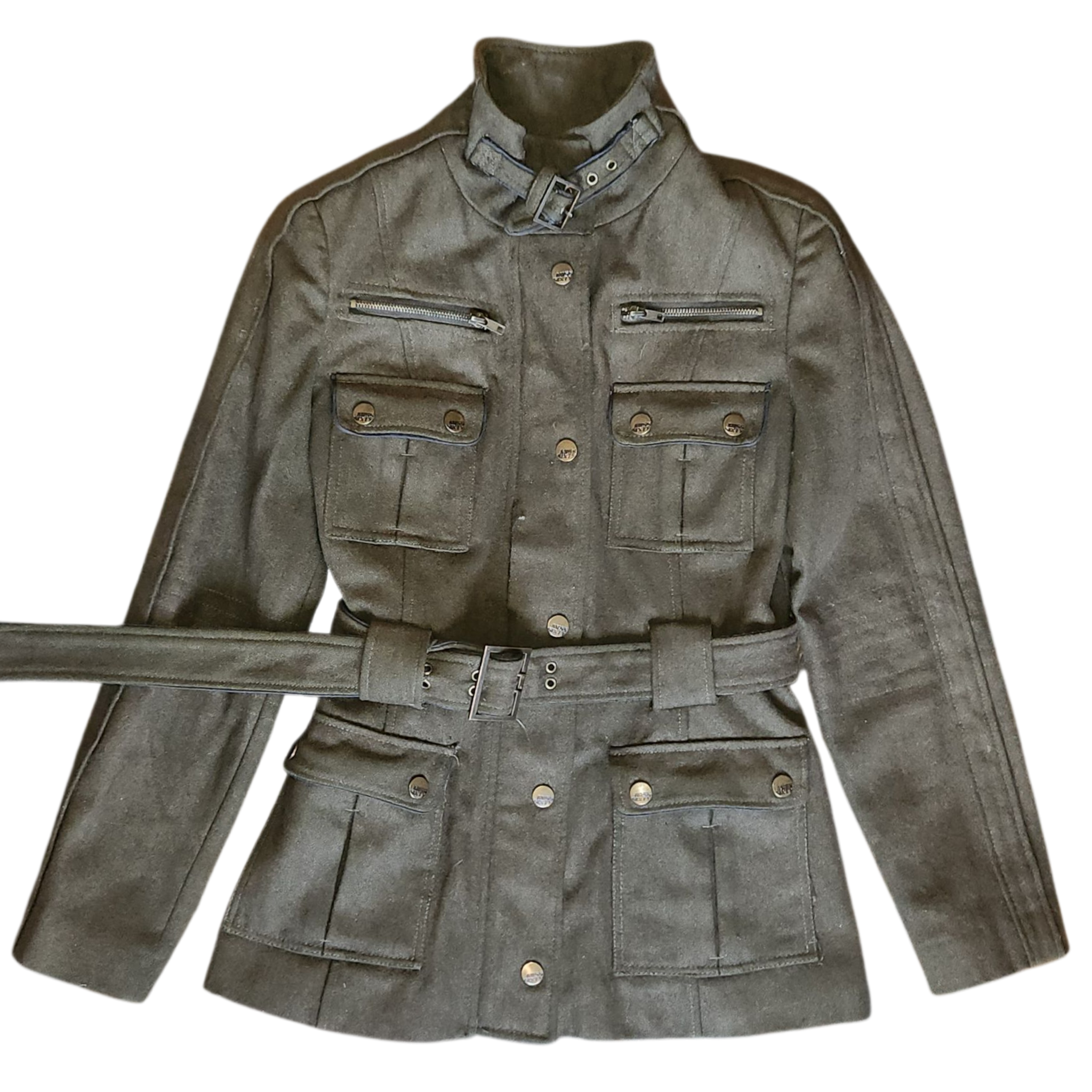 The "M60" trench jacket by Miss Sixty. Waist belt and several pockets across the front.