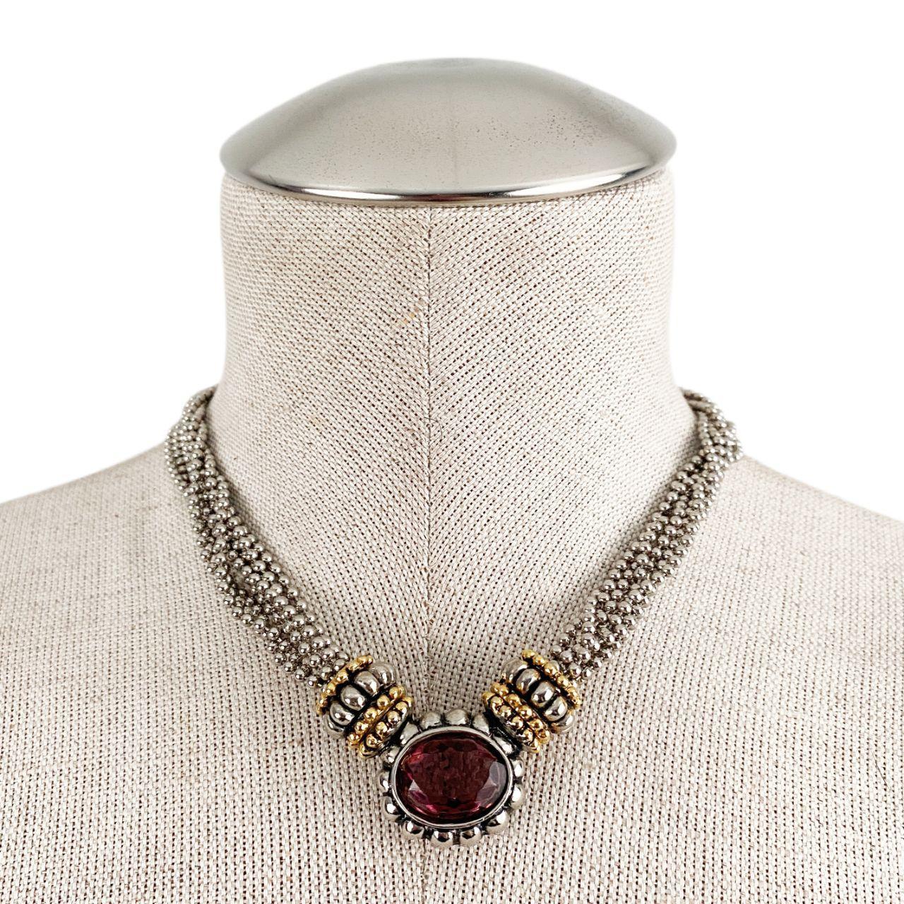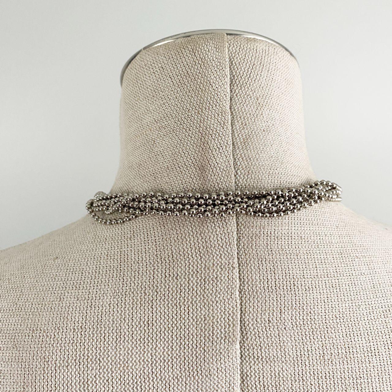 vintage silver and plum purple gem necklace. weighted multi-strand silver beads with front clasp closure