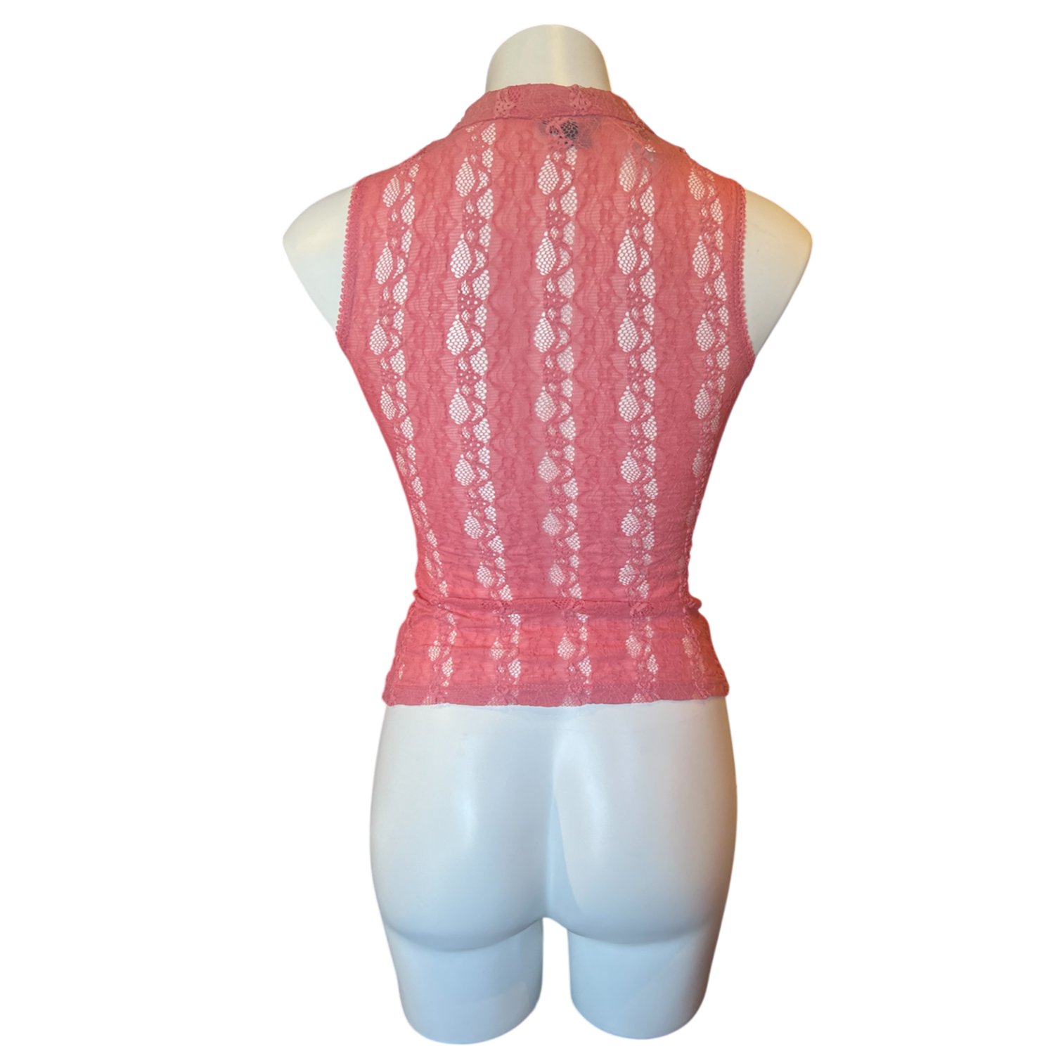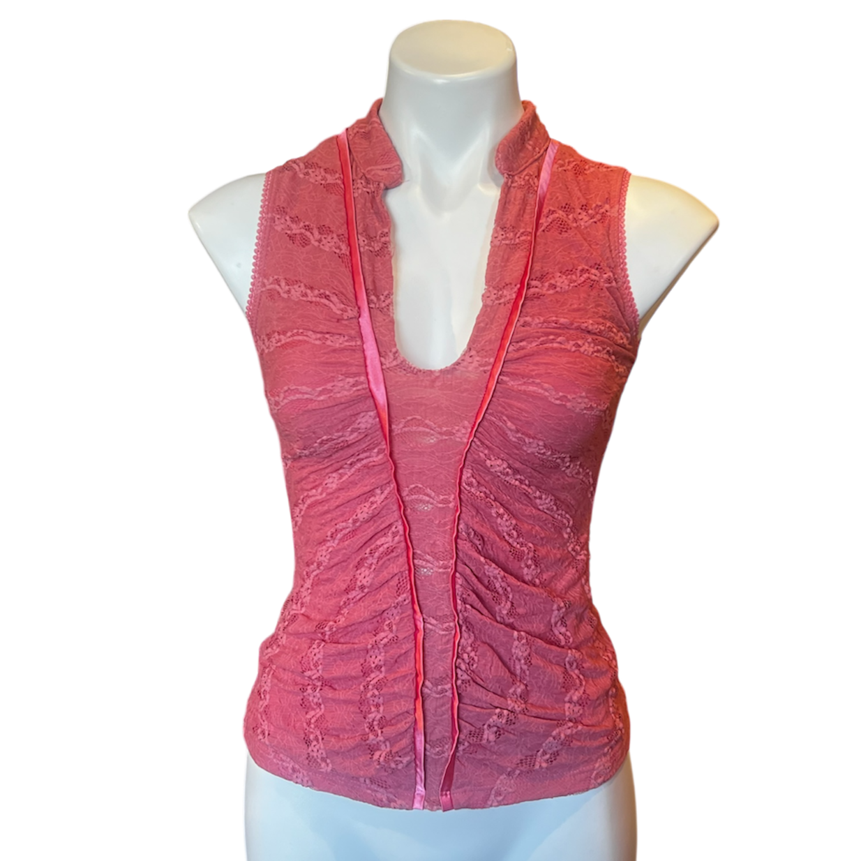 Sheer baby pink v-neck sleeveless top. Has lots of stretch.
