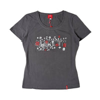 Rare 90s vintage faded black and white Parisian city print low rise pants with rhinestone embellishments!