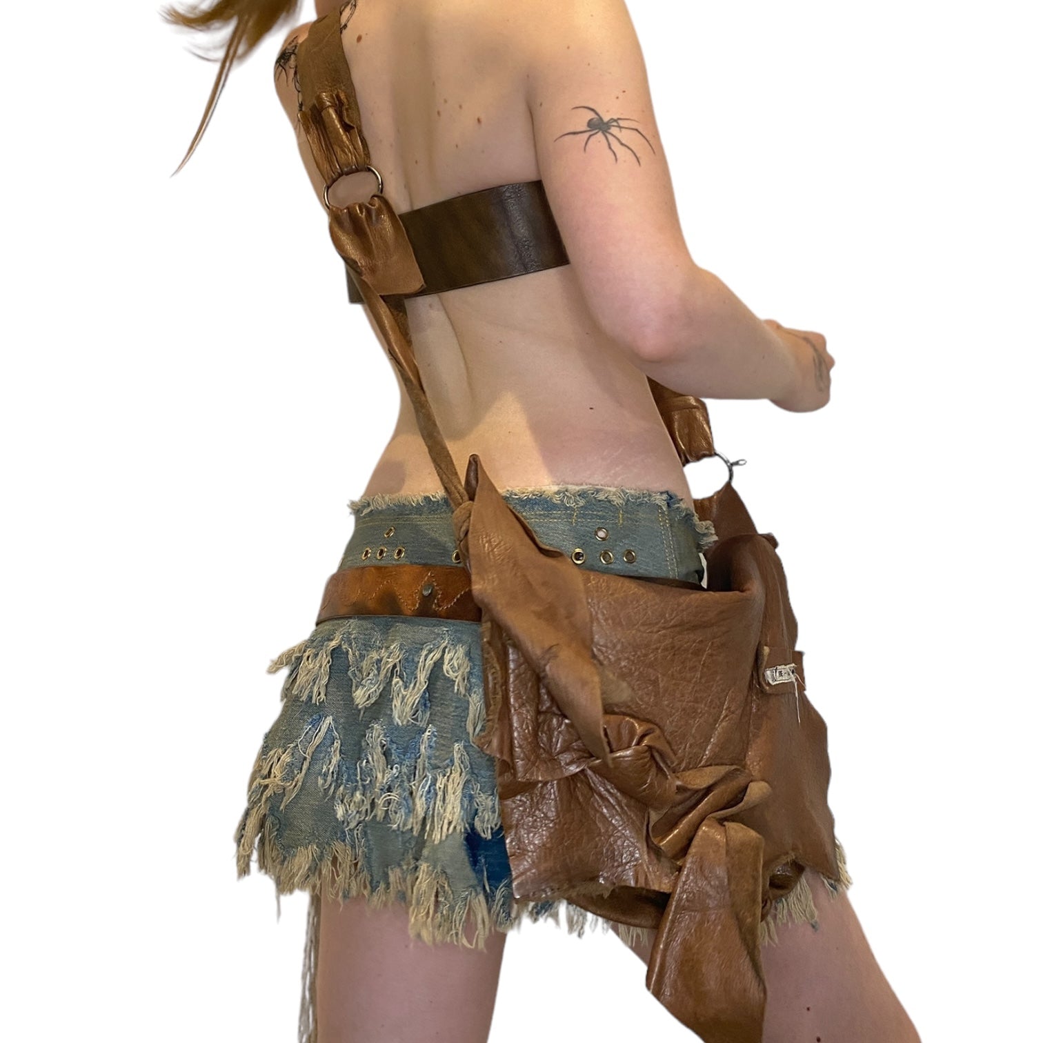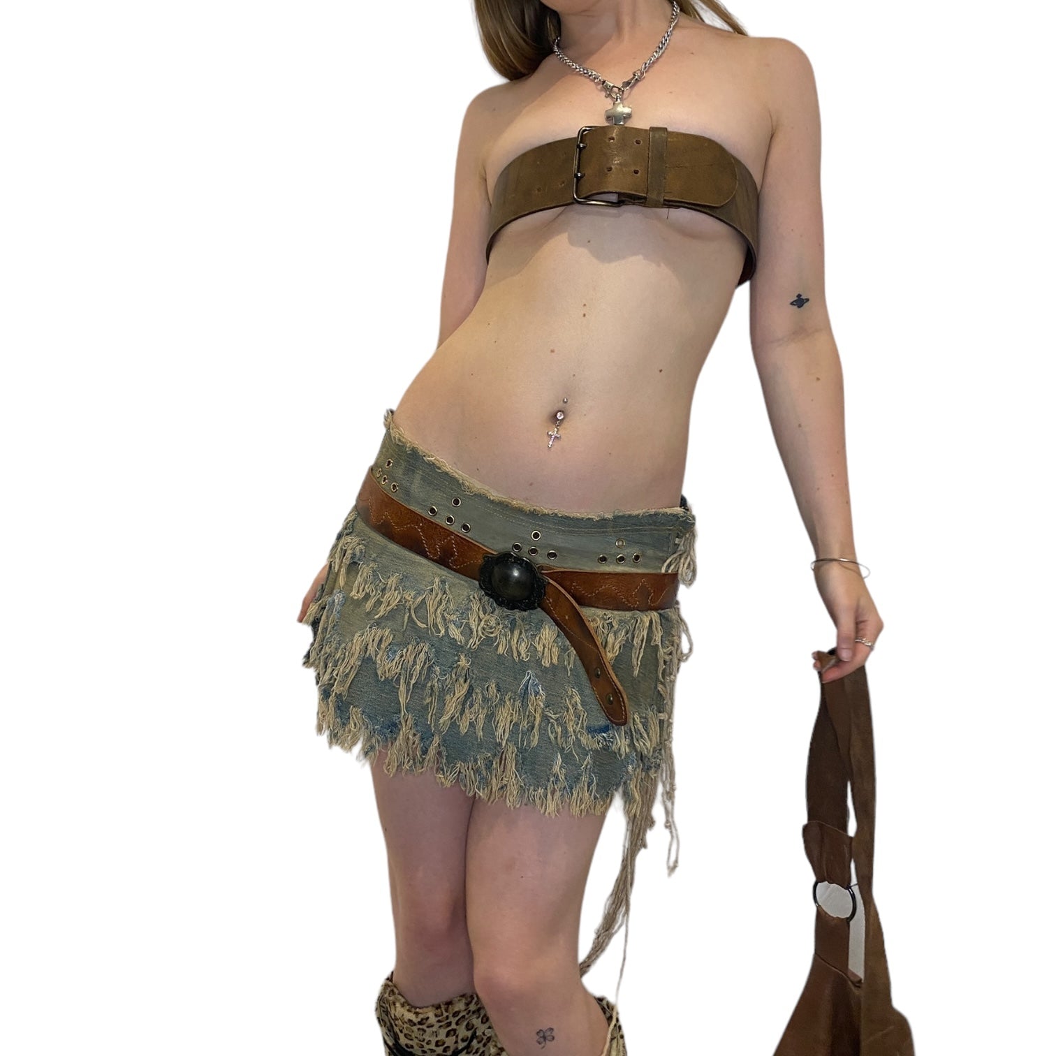 ✯ Timeless Wear Original 1 of 1 bespoke up-cycled skirt, Y2k low-waisted denim tiered mini skirt with tie up side and eyelet details, Made from recycled Levi's jeans in the UK ✯