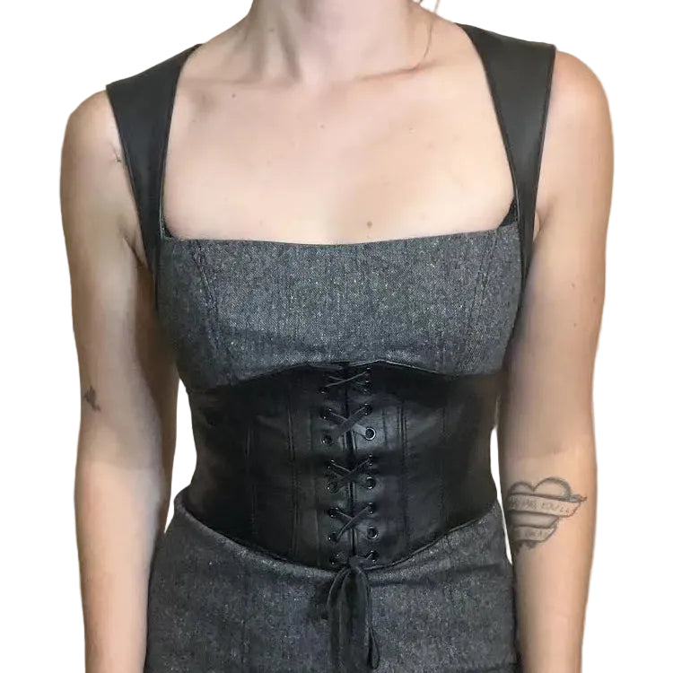 - 42% wool, 5% silk, 25% spandex, 100% leather contrast