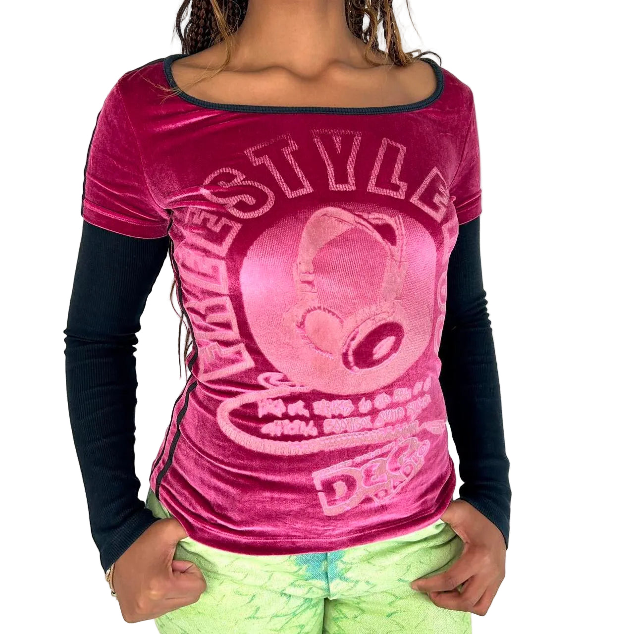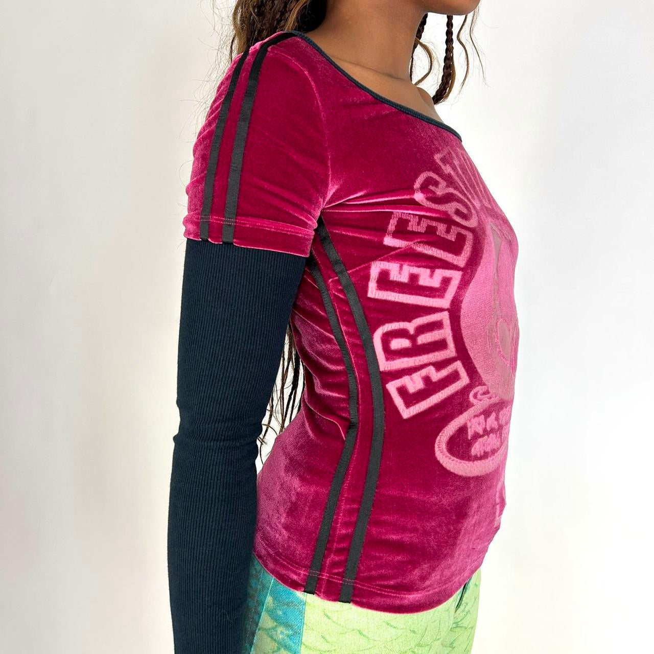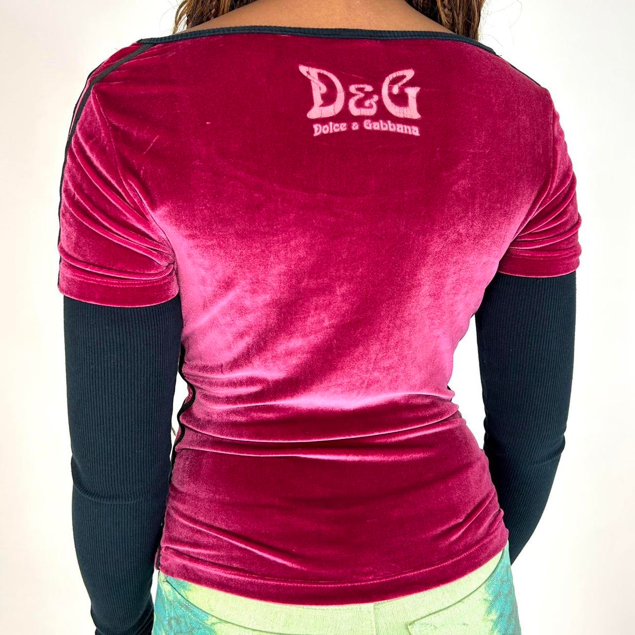 Vintage 2003 Dolce & Gabbana pink velour long sleeve top with black ribbed long sleeves