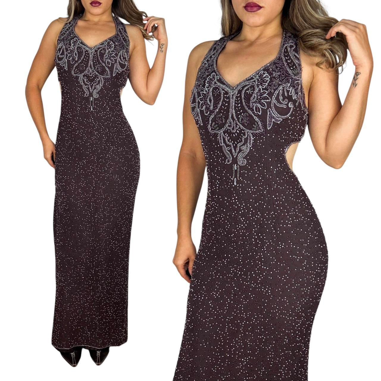 90s Beaded Silk Cutout Gown (S)