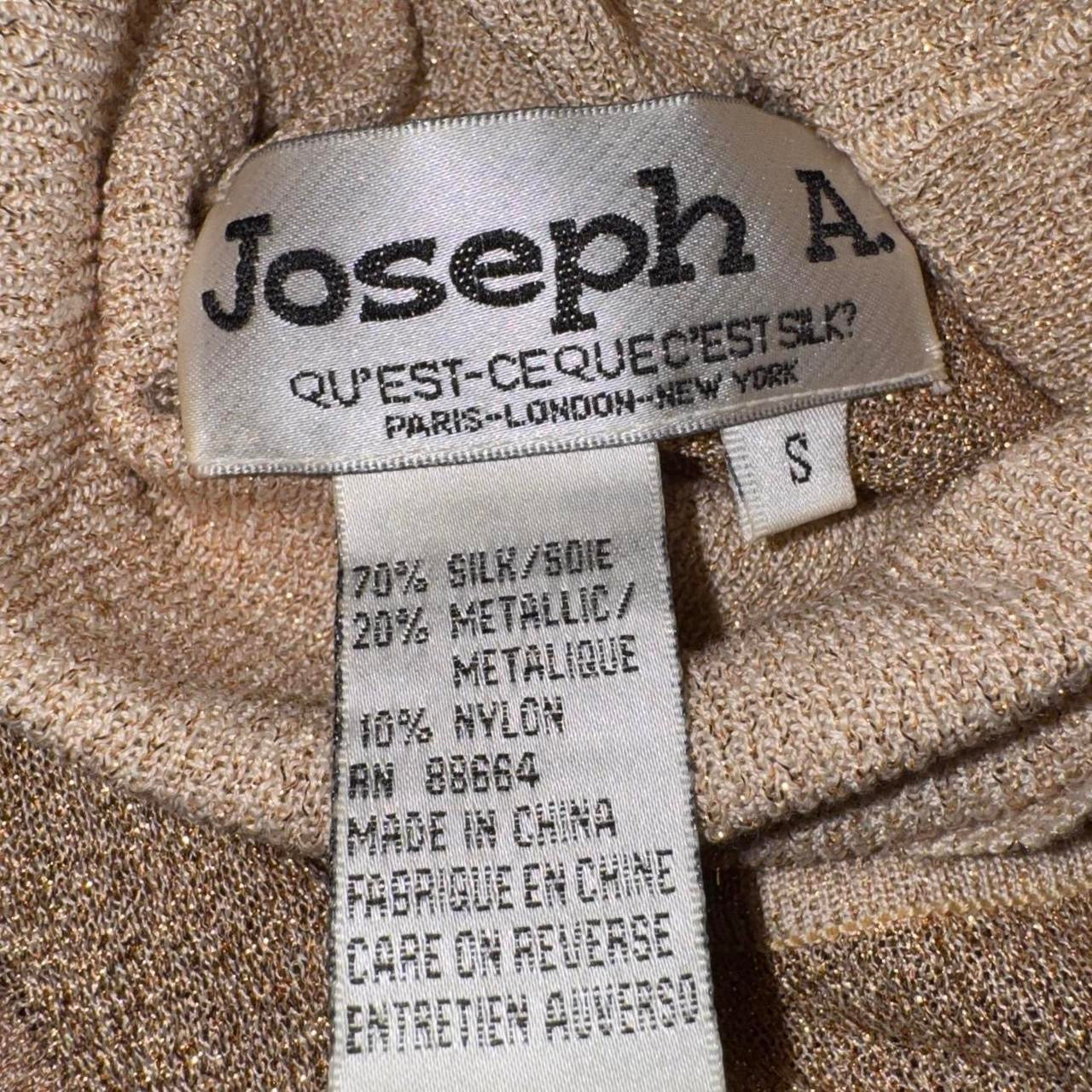 Chic champagne gold sleeveless turtleneck with metallic shimmer & a sheer panel at the neckline. Stretchy & lightweight silk knit blend.
