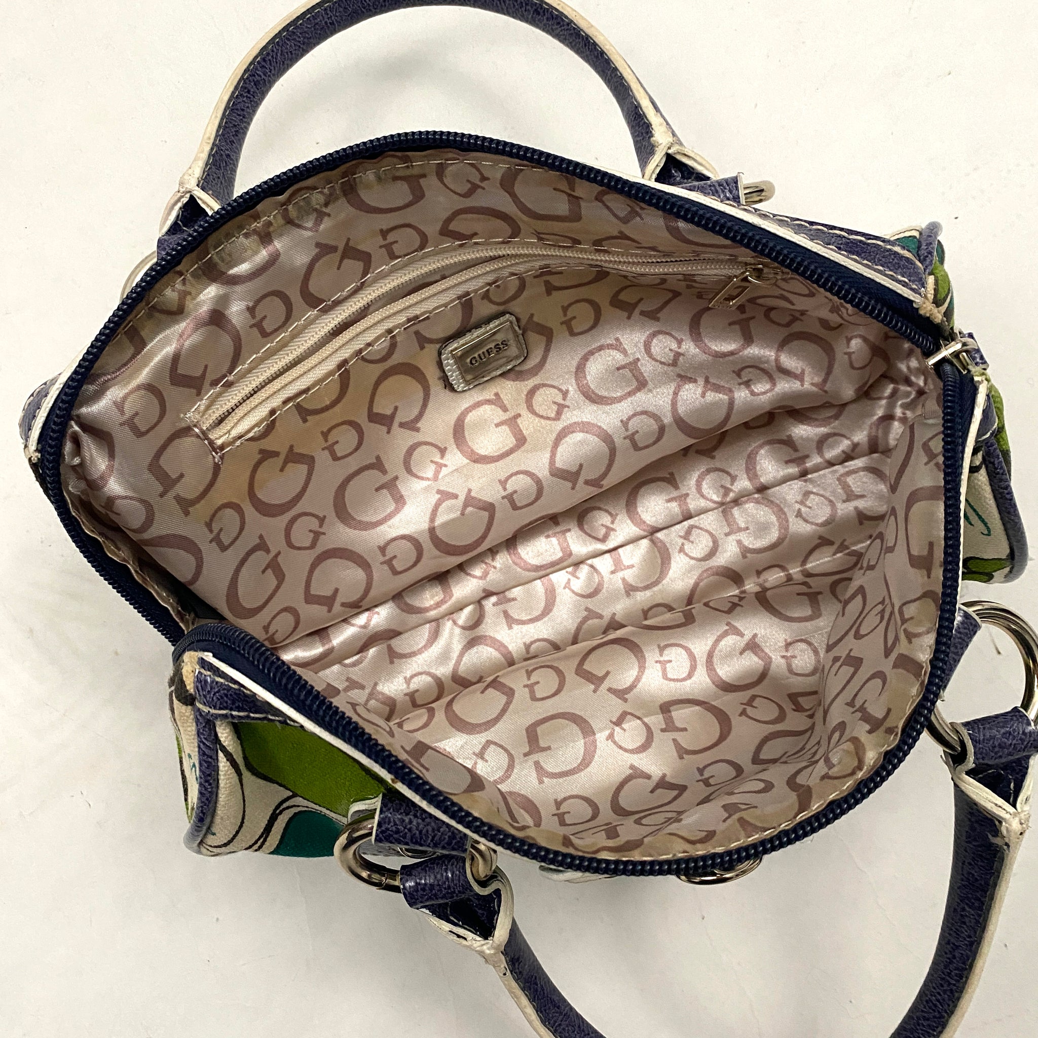vintage guess canvas floral handbag with the iconic silver 'g' hardware. genuine leather trim.