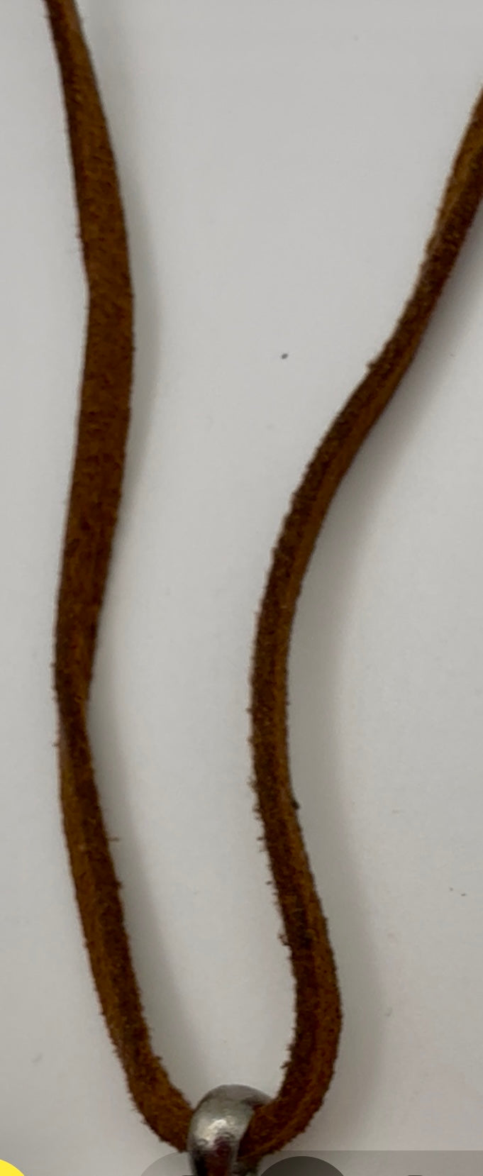 Add a touch of vintage charm with this beautiful boho-style necklace and matching stud earrings. Featuring a detailed black silver-tone pendant with warm orange stones on a soft brown suede cord, this piece is perfect for casual or festival looks. Adjustable length for a comfortable fit.