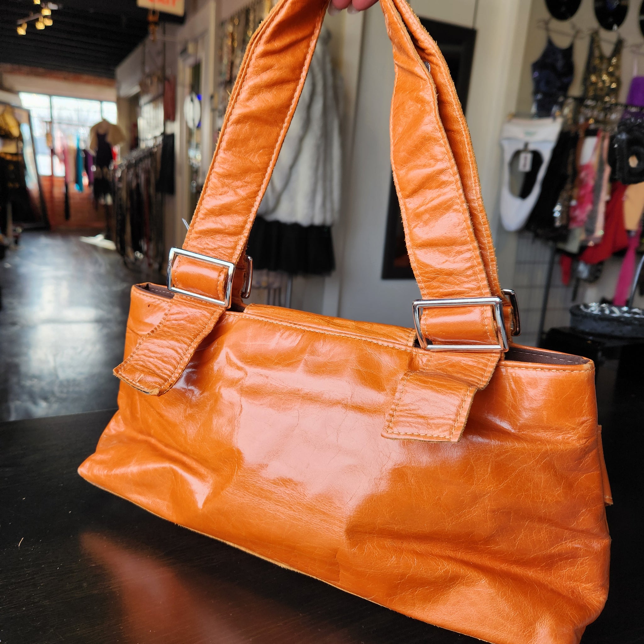 This buckled grunge-core bag is a perfect statement piece that would oair well with any outfit as the main pop of color.