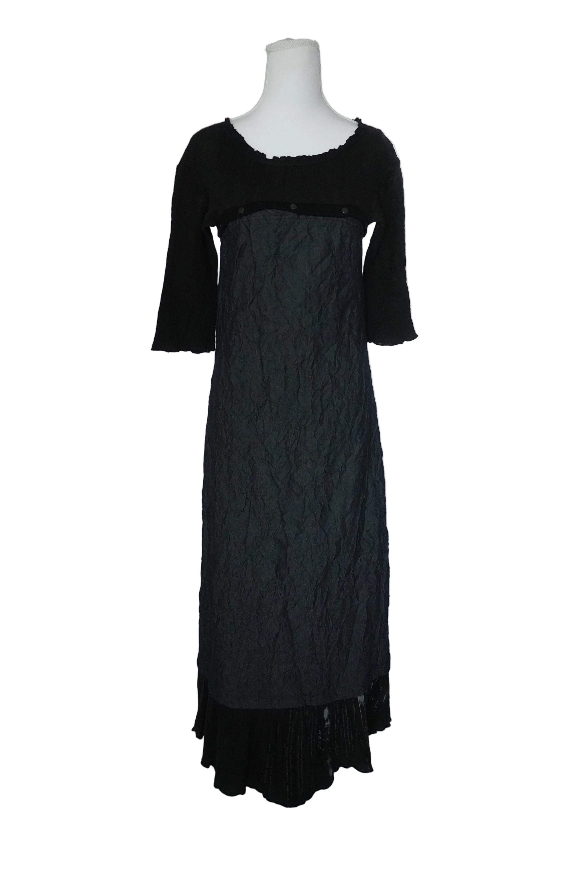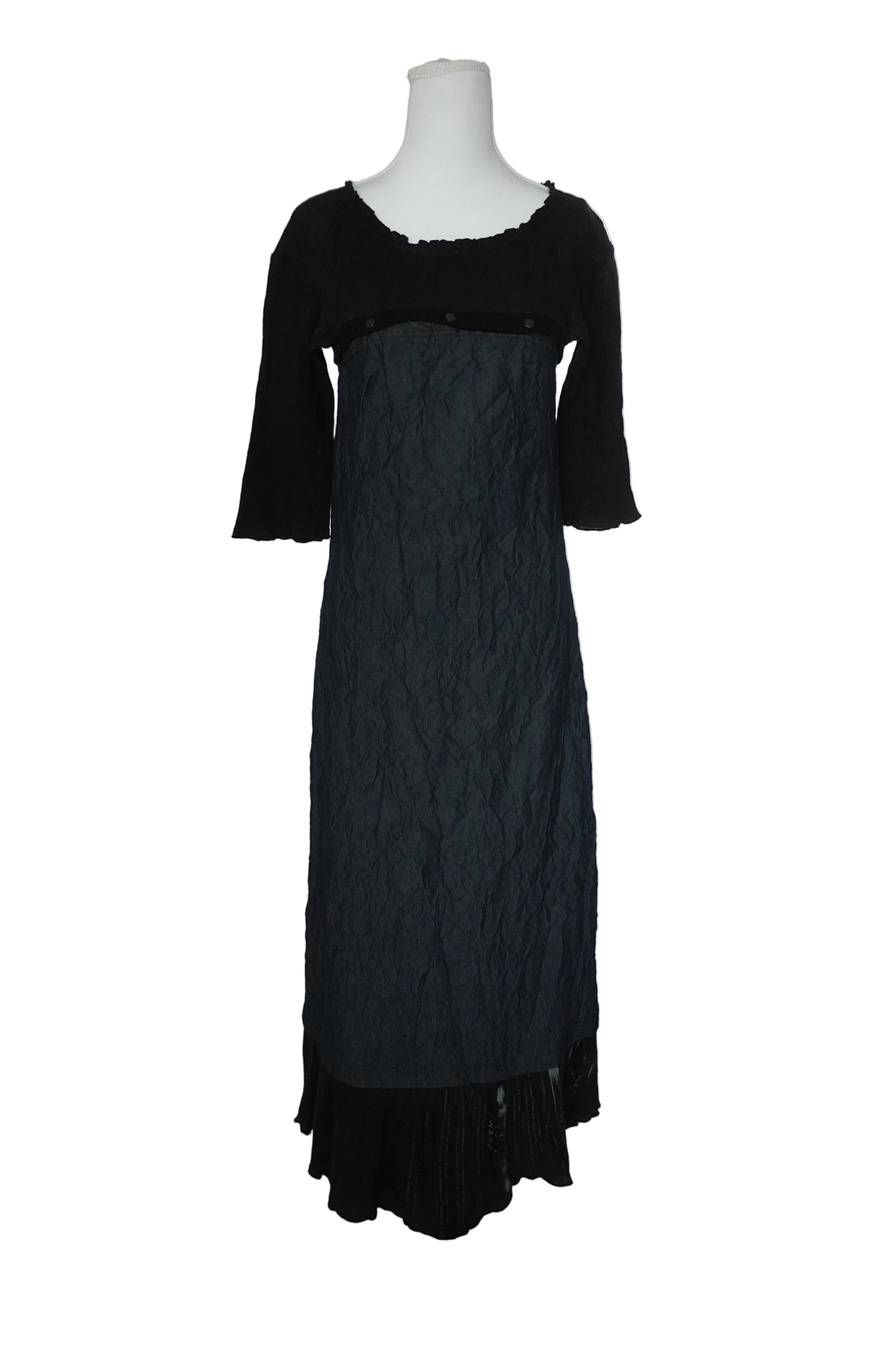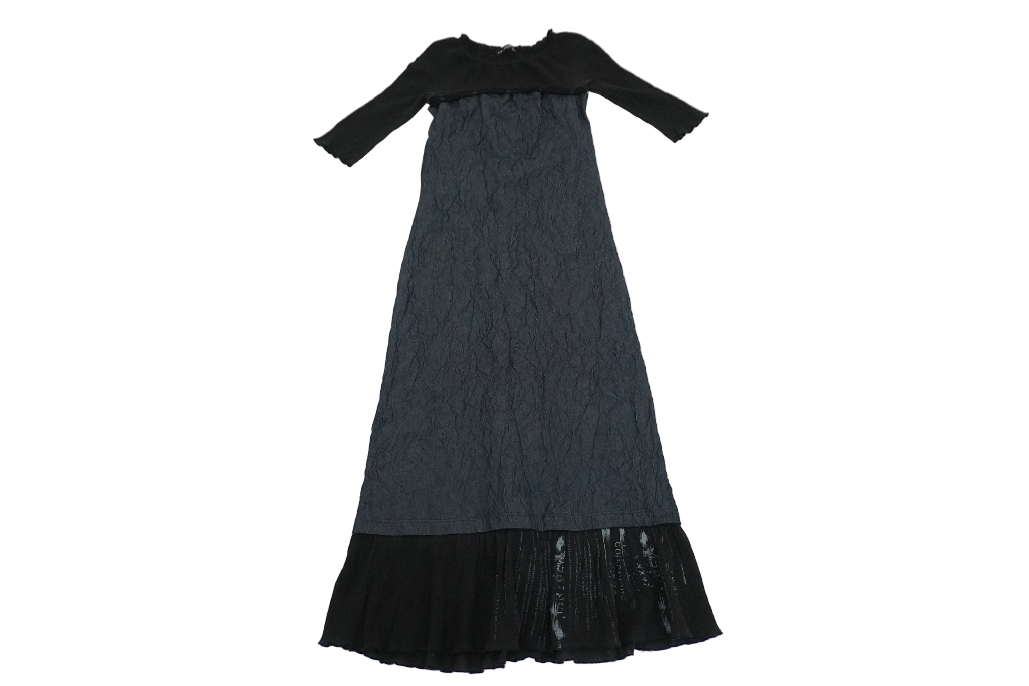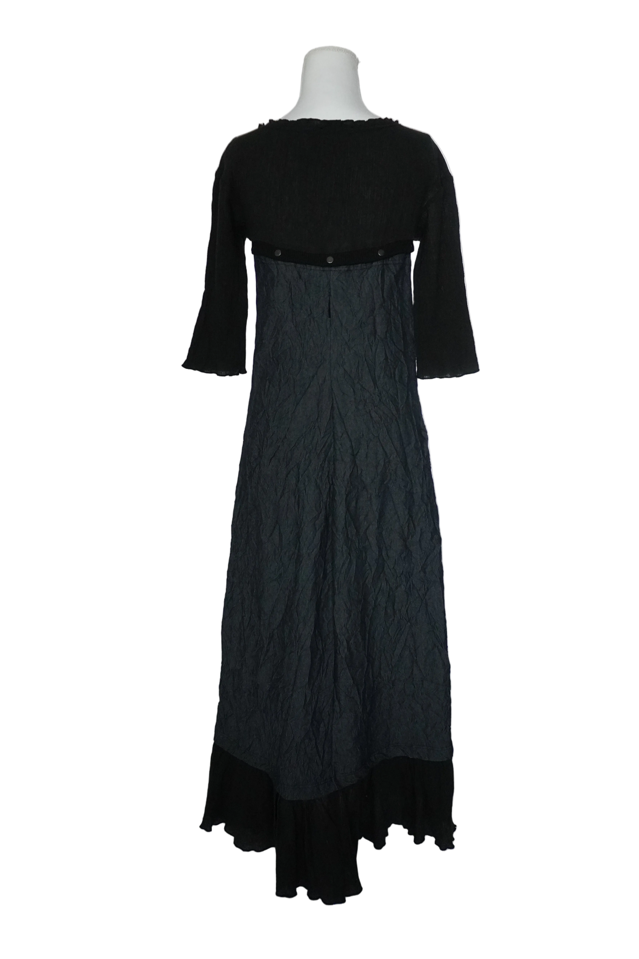 Insane Cop Copine mixed media maxi dress with ruffle hem at the bottom and a detachable 3/4 sleeves bolero that attaches with snap buttons.