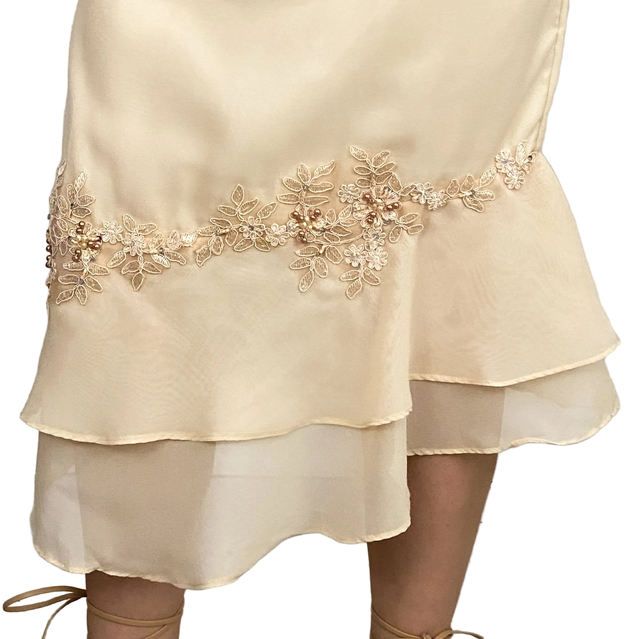 creamy handmade embellished fairy midi skirt. pinned at the waist for the pics.