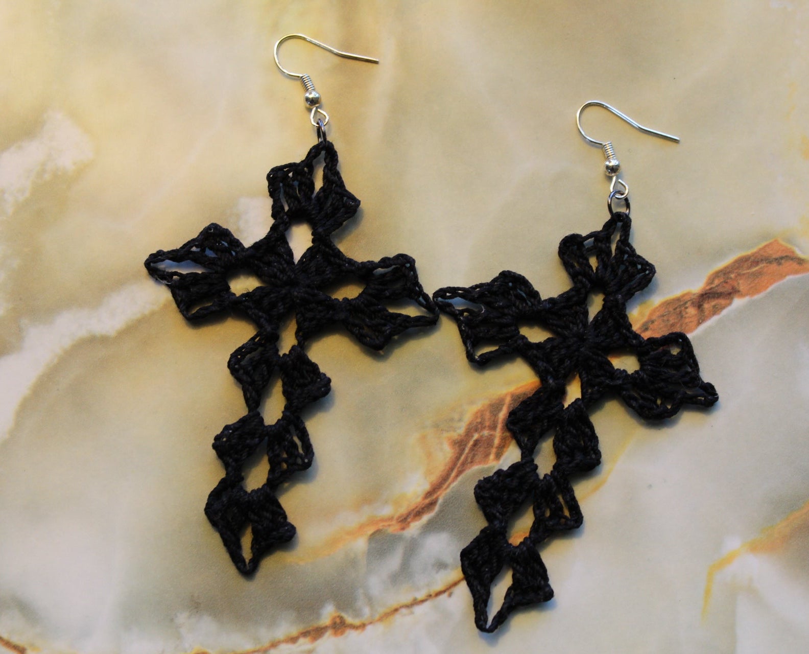 Handmade crochet cross earrings