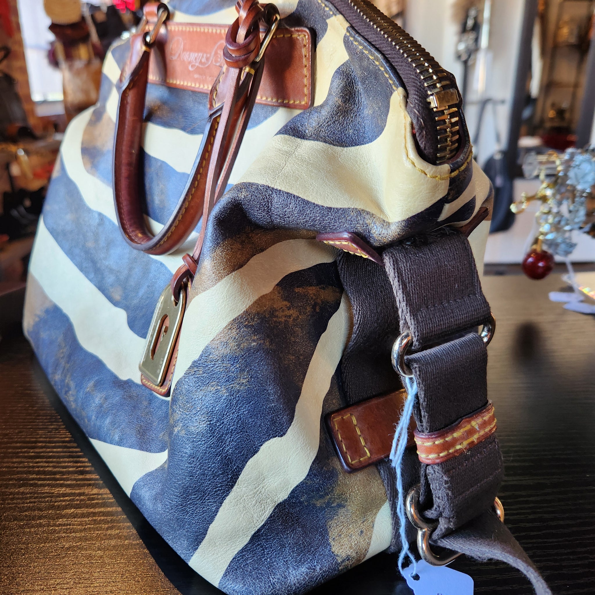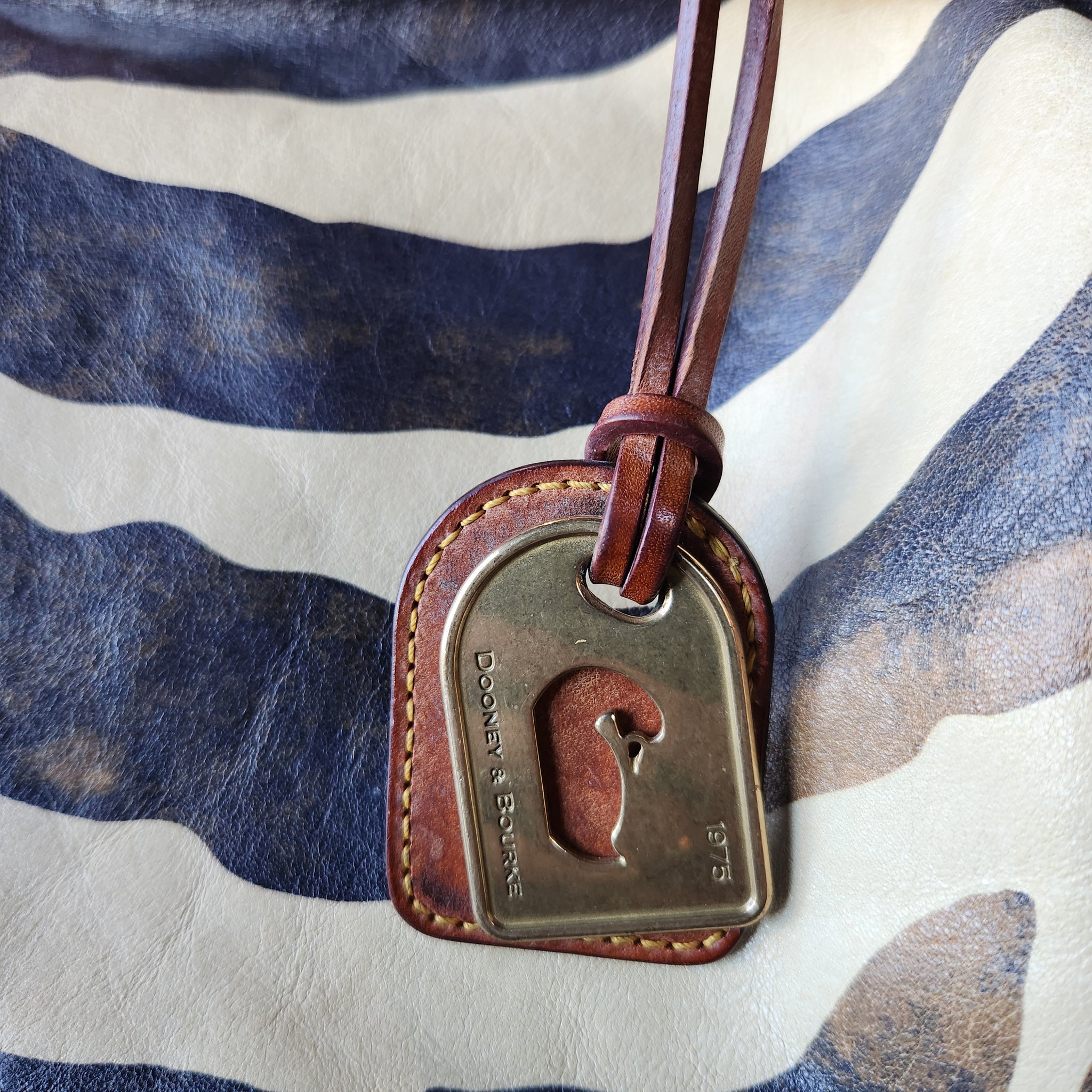 Classic Dooney bag with so much character inside and out, the beautiful striping design pairs beautifully with the light brown leather finish.
