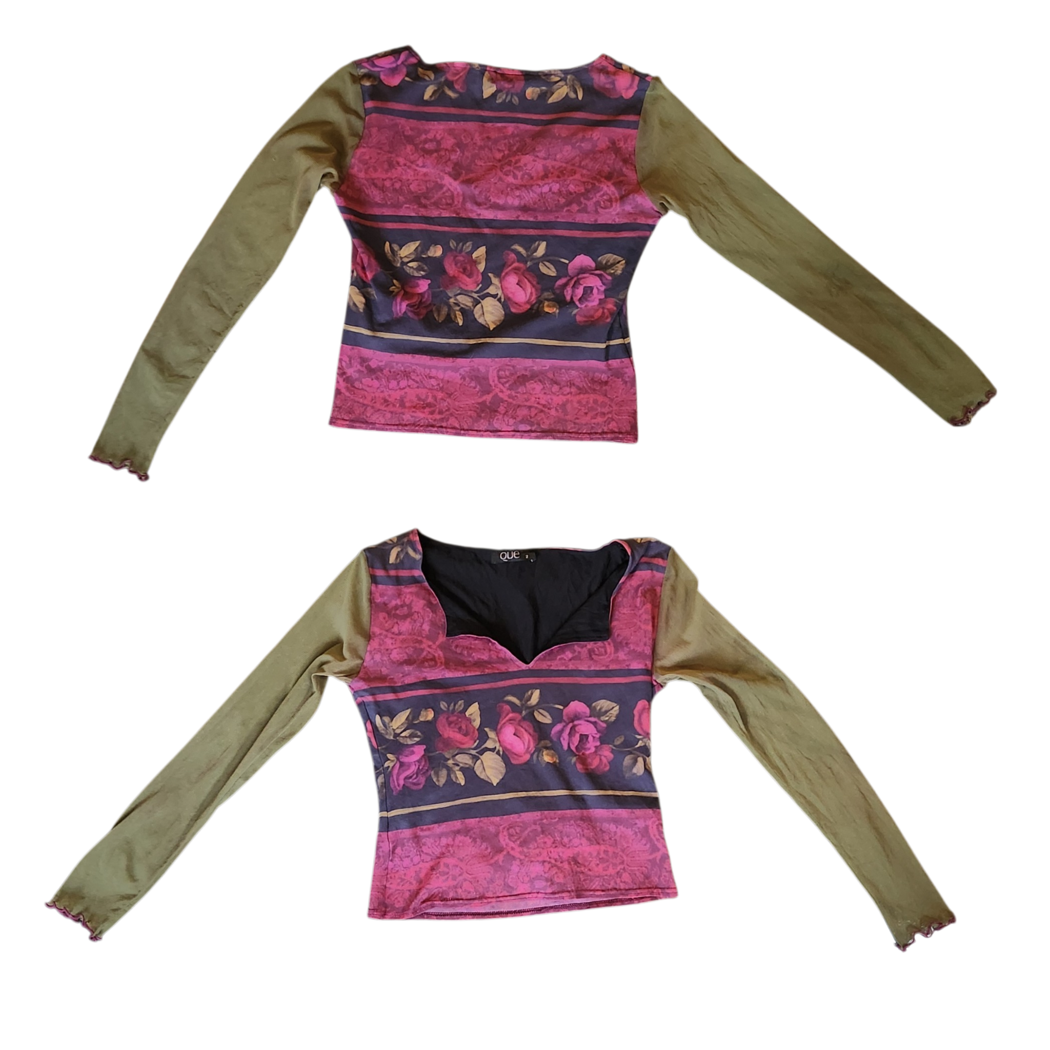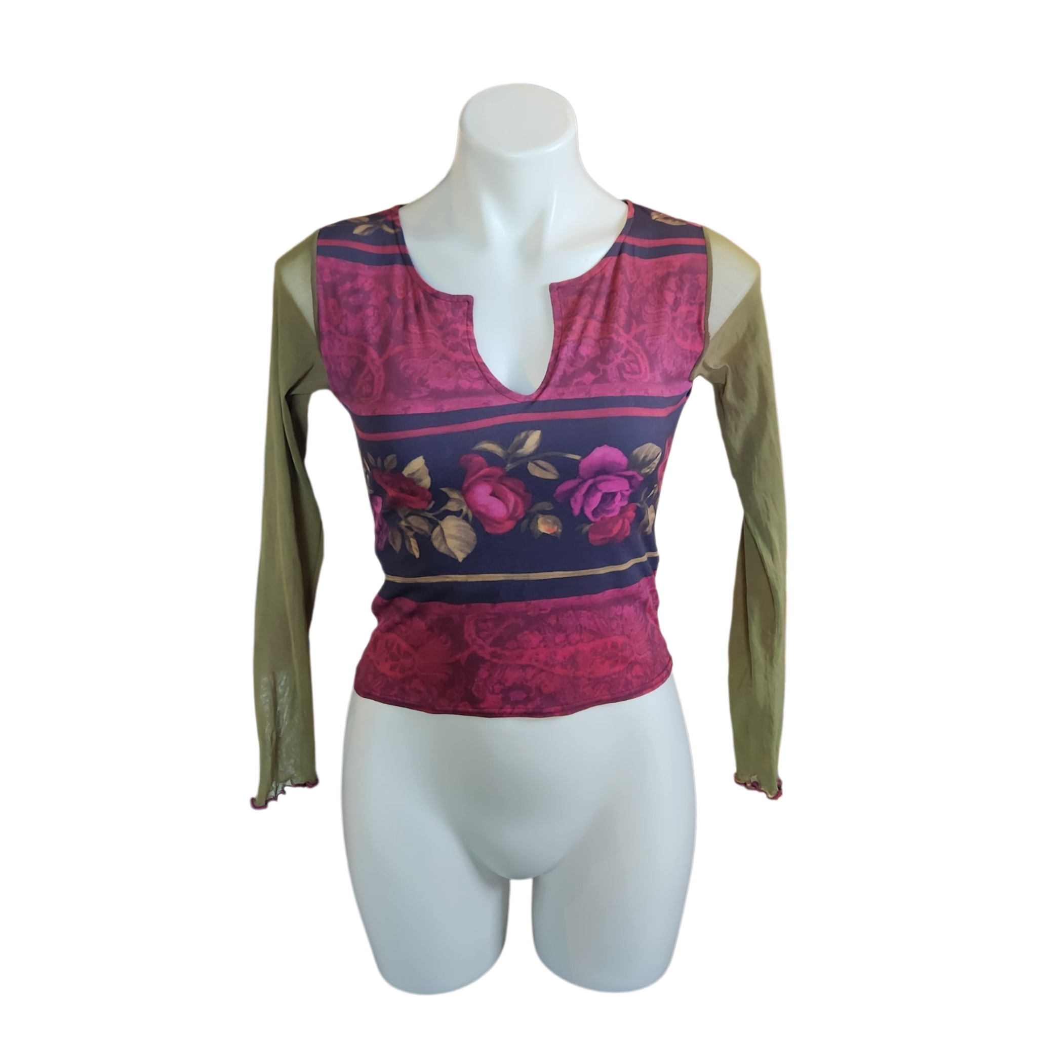 Floral print mesh longsleeve top.