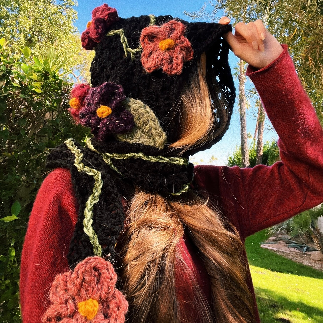 Forest Fairy crochet scoodie (scarf with attached hood)! One of a kind piece, designed and handmade by me :)