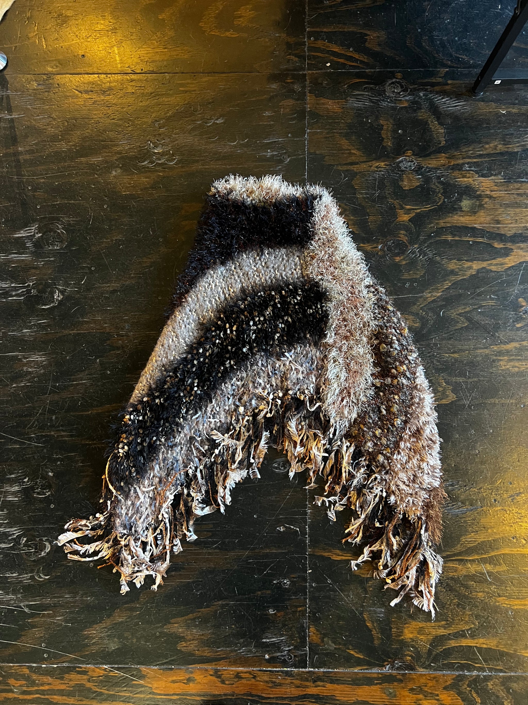 Fuzzy Neutral Tone Fringe Poncho (OS)
