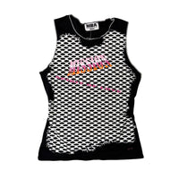 The fuzzy patchwork skirt is hand knit, and entirely hand-sewn and collaged together to make a one-of-a-kind treasure. Composed of different patterns, gradients and variegated stitching.