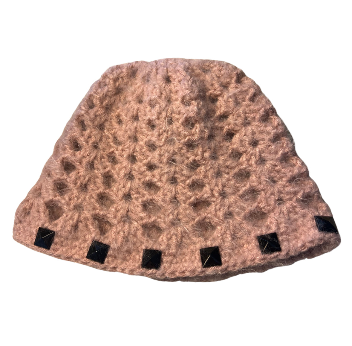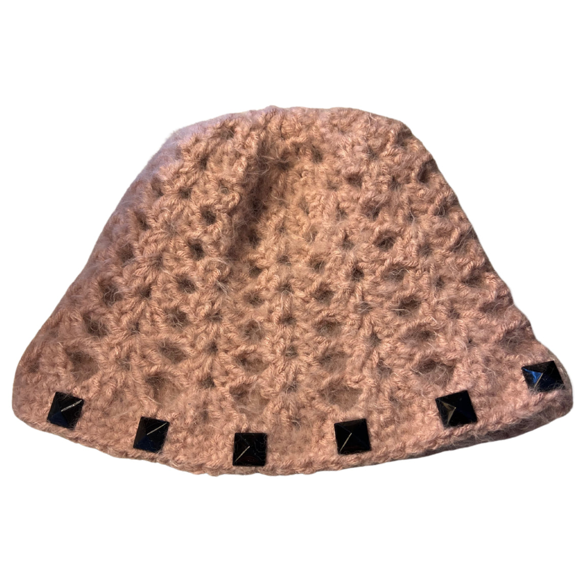 Fuzzy Studded Crochet Beanie