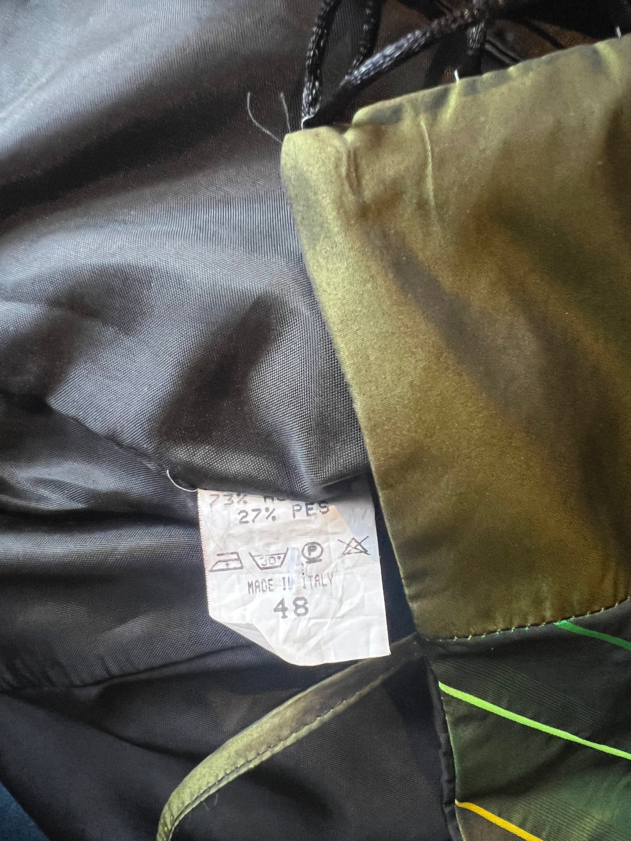 Green satin striped and beaded embroidered corset top made in Italy.