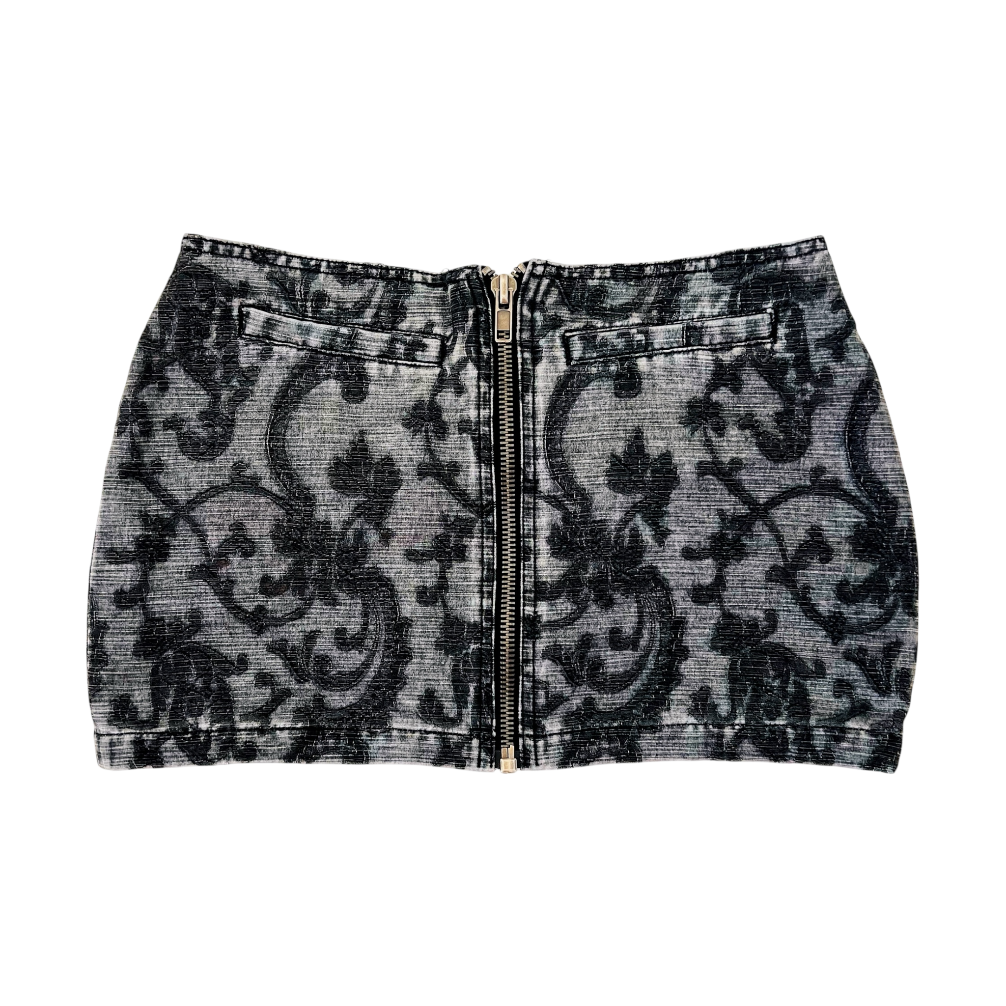 Silvery/pewter metallic floral brocade-style mini skirt with a zipper closure up the front!