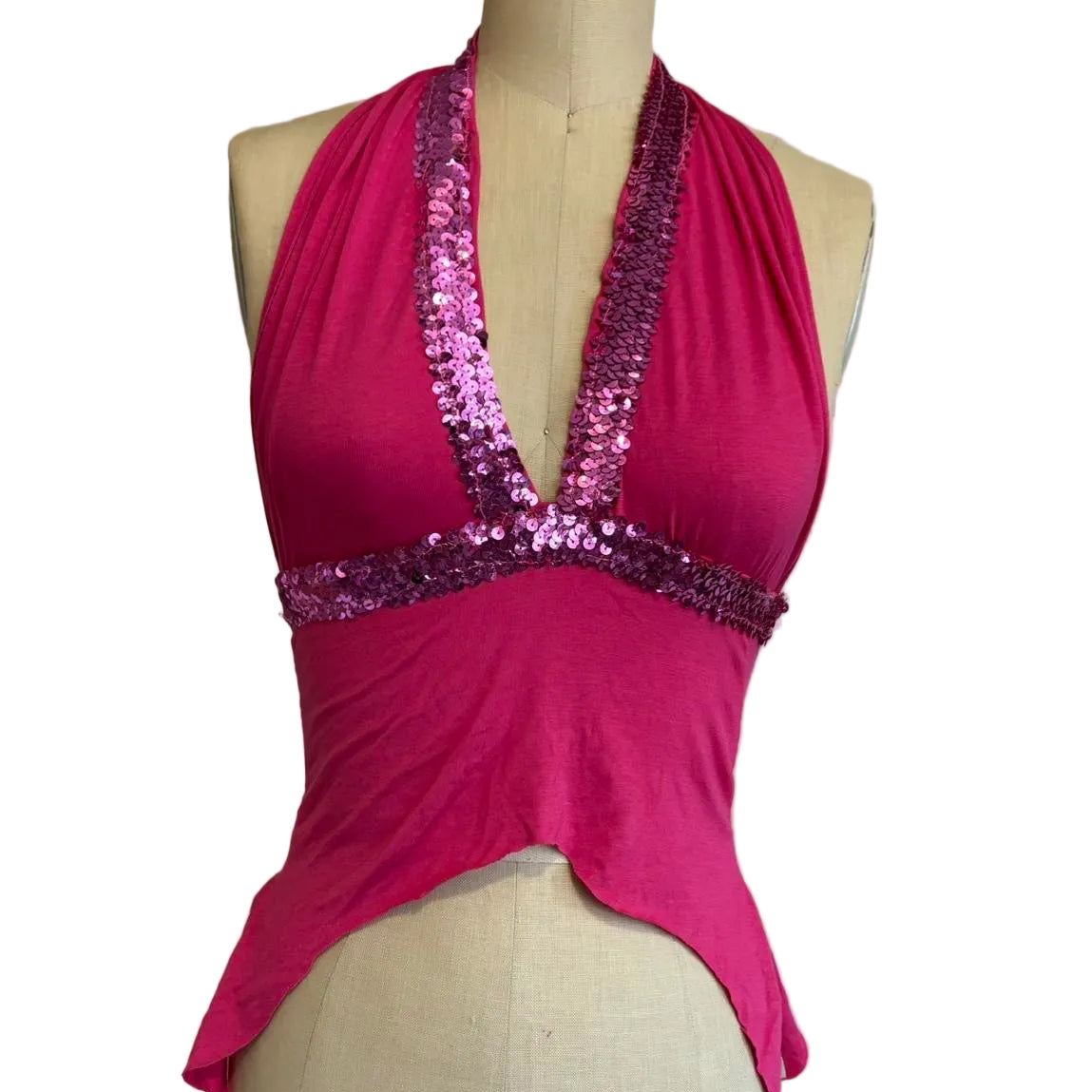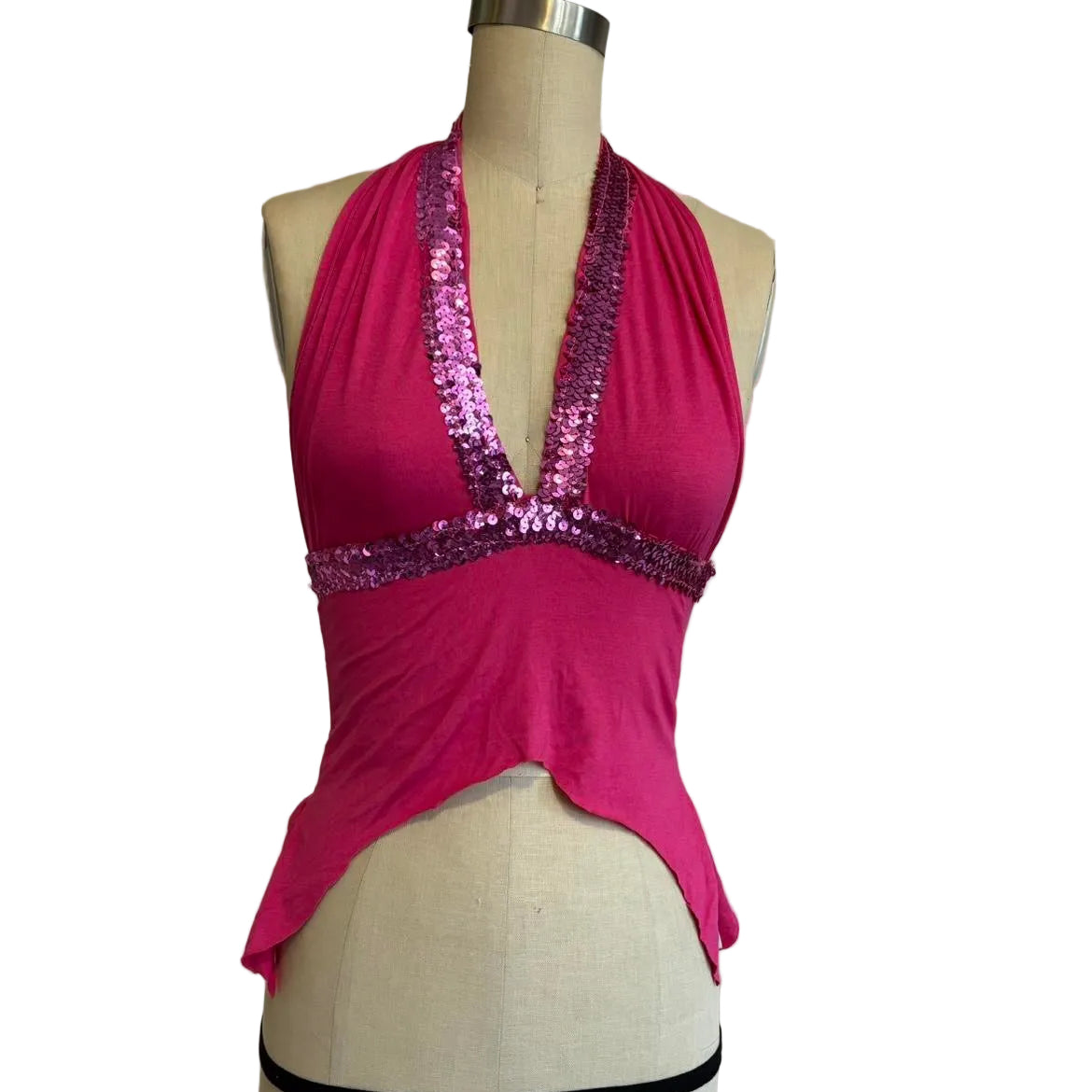 The Hibiscus top is very early 2000’s coded, the sequin trim adds a monchromatic element you can only find here !