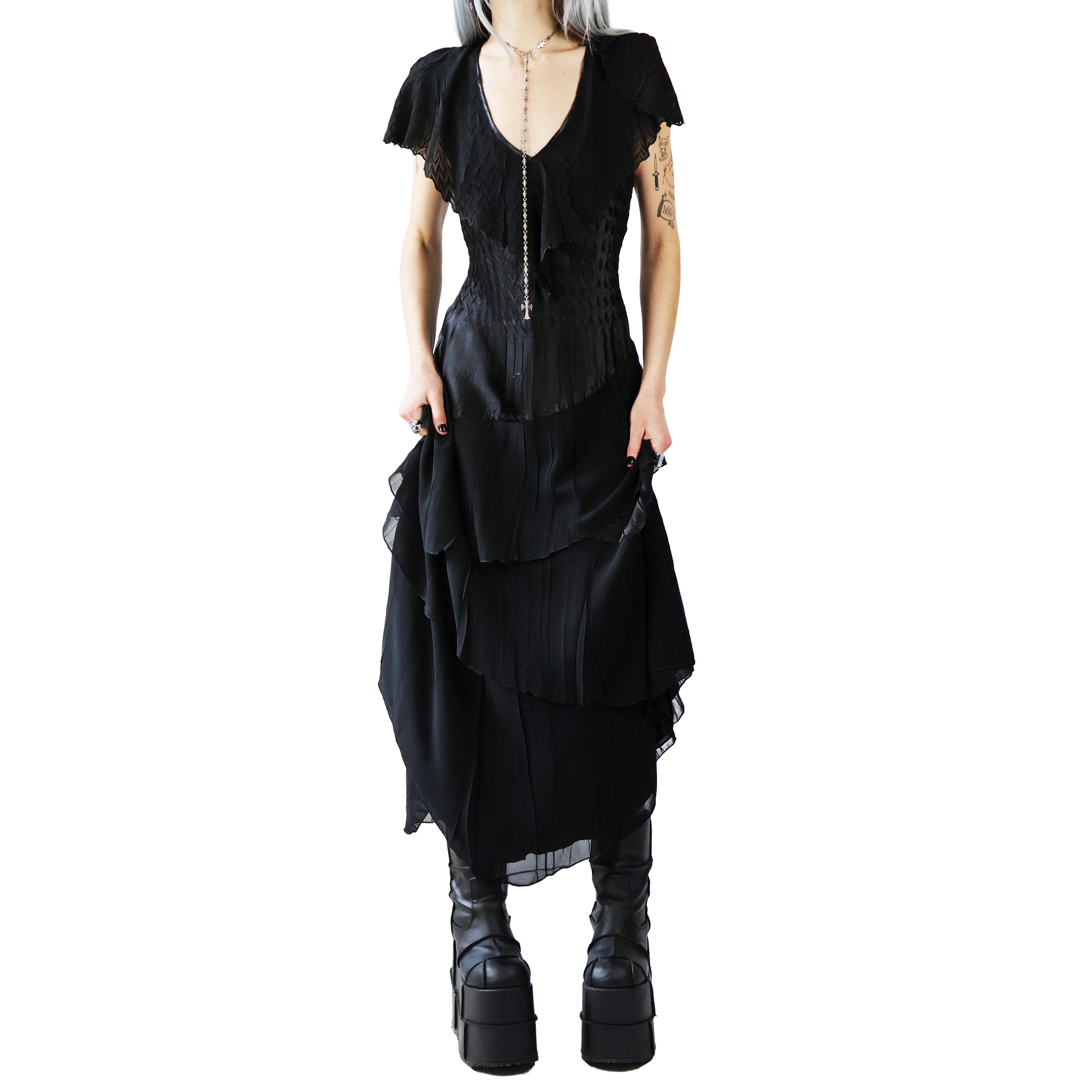 KOMAROV Noir Flutter Gown (S)