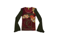 Vintage lightweight denim midi/knee length skirt with sheer/lacy boho details!