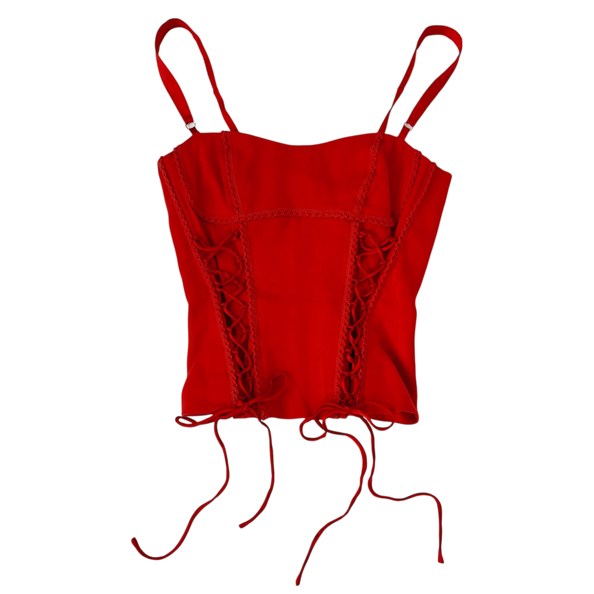 Vintage vibrant red silk-blend bustier/corset style top, by Marciano!