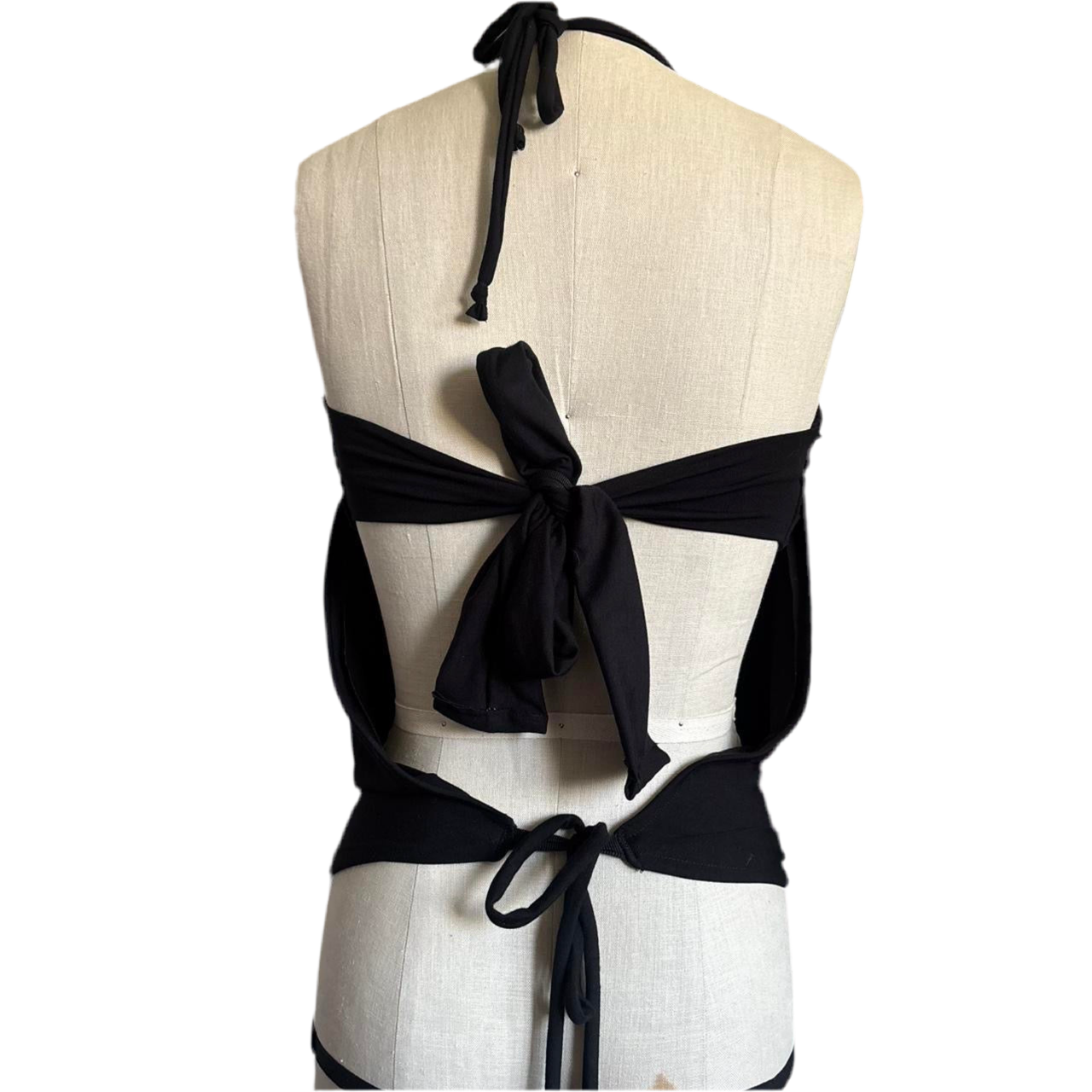 This halter top is made of 2 pieces the bandeau section and the cowl neck that drapes over making it fully adjustable. This top is perfect for festivals or going out.