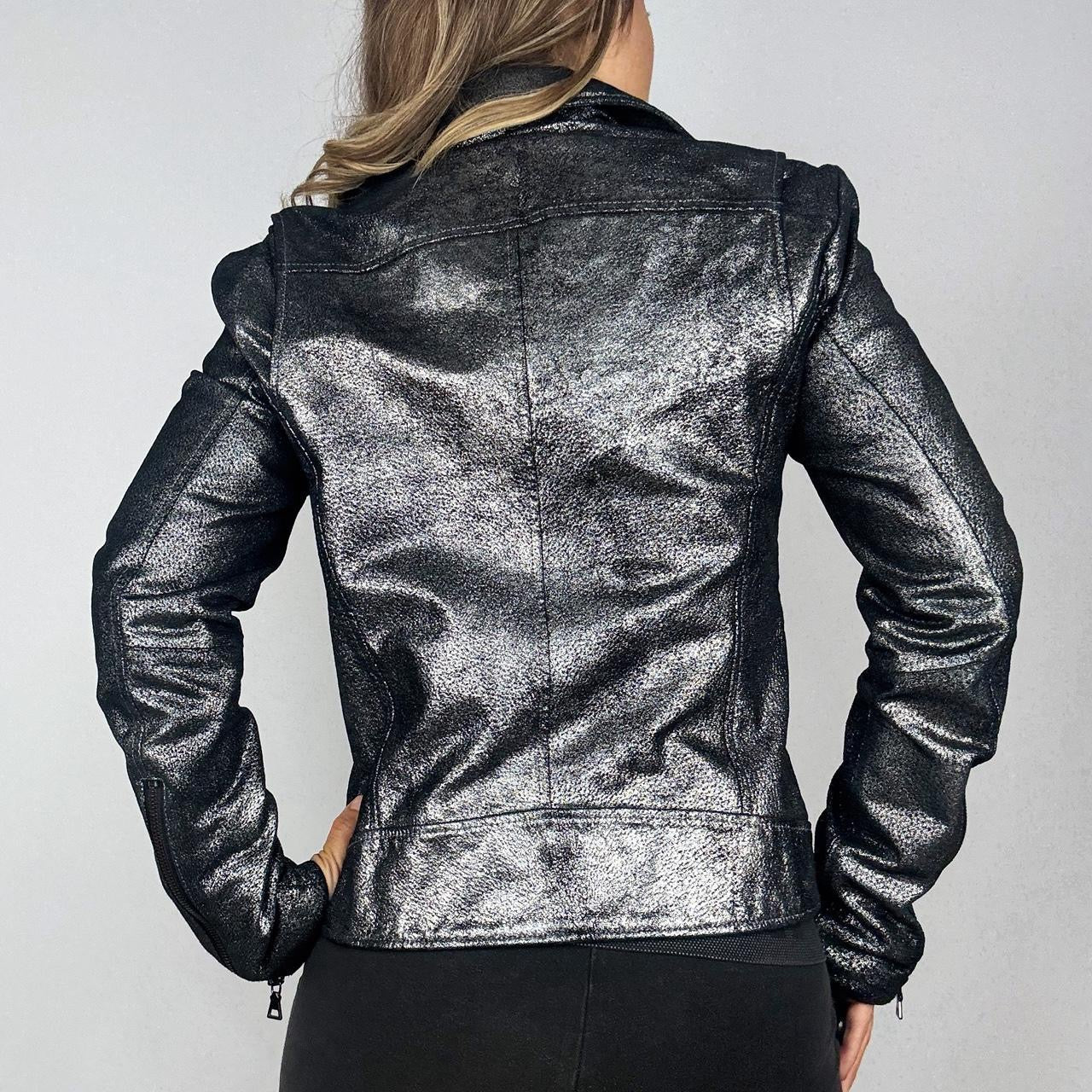 Metallic Genuine Leather Moto Jacket (S)
