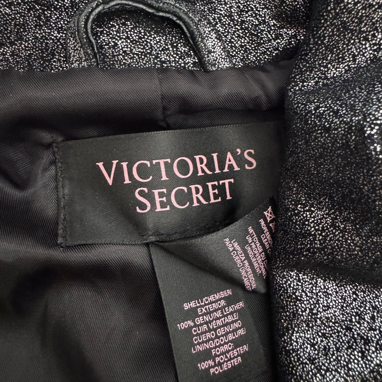 Super cute 2010s indie sleaze vibes silver & black genuine leather moto jacket from Victoria’s Secret. Excellent condition.