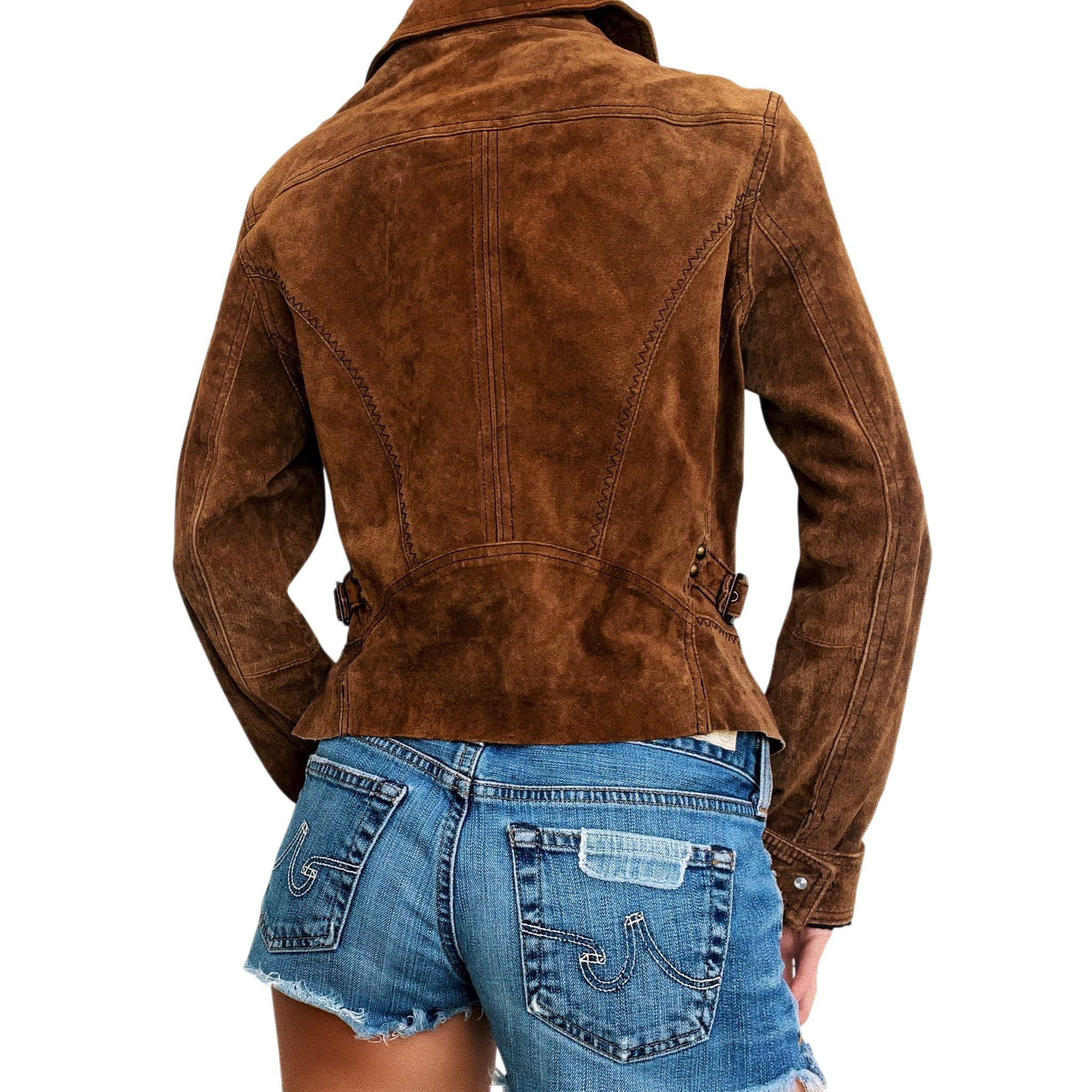Genuine suede leather chestnut colored jacket by Miss Sixty!