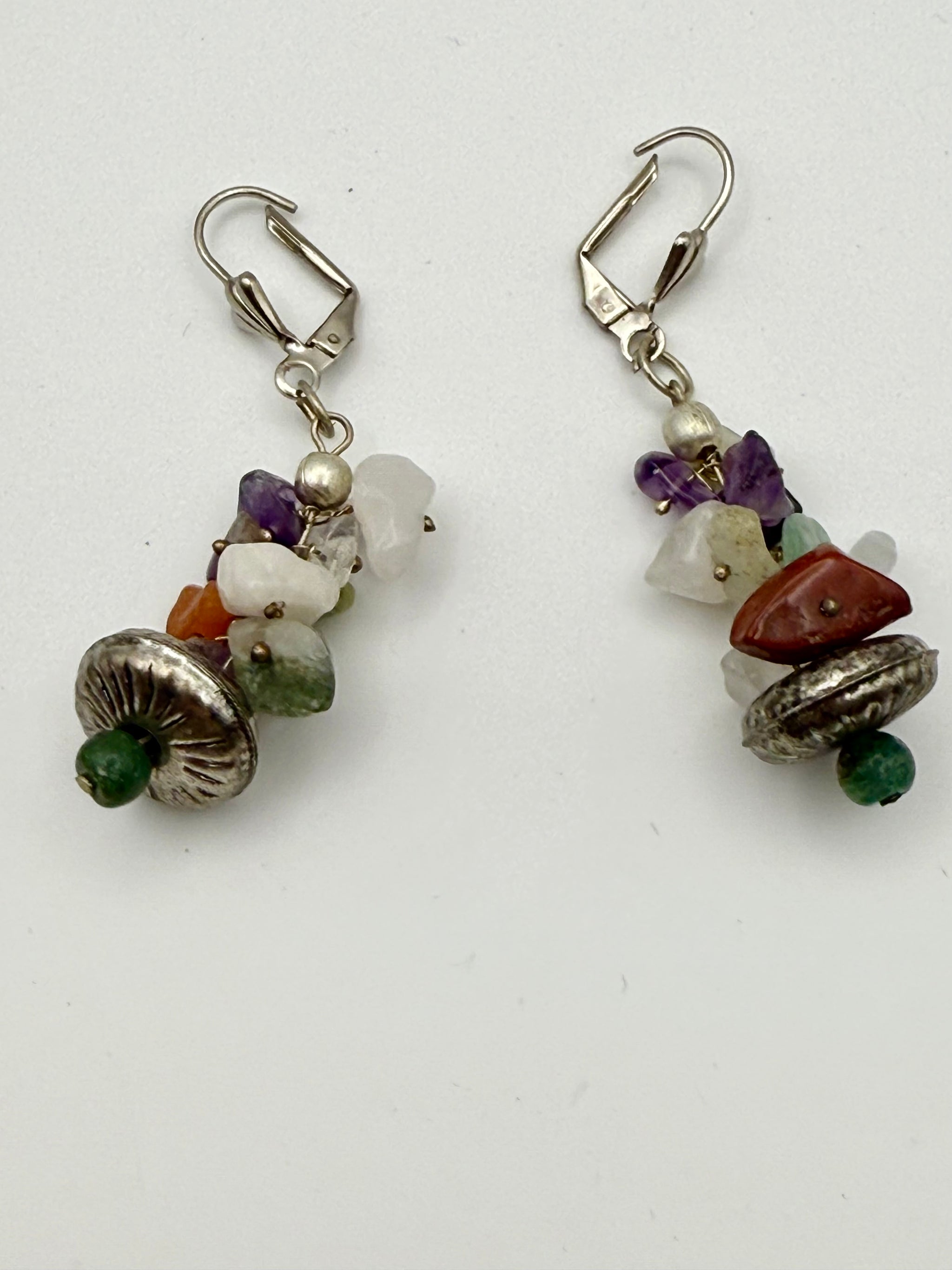 Beautiful Indian handcrafted necklace and earring set featuring natural multicolor gemstone chips, silver-tone beads, and polished round stones. A vibrant and earthy design that adds a touch of boho elegance to any outfit.