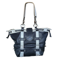 High quality leather with multiple usable pockets in the front and inside. The front shines with silver studs that make for a unique staple.
