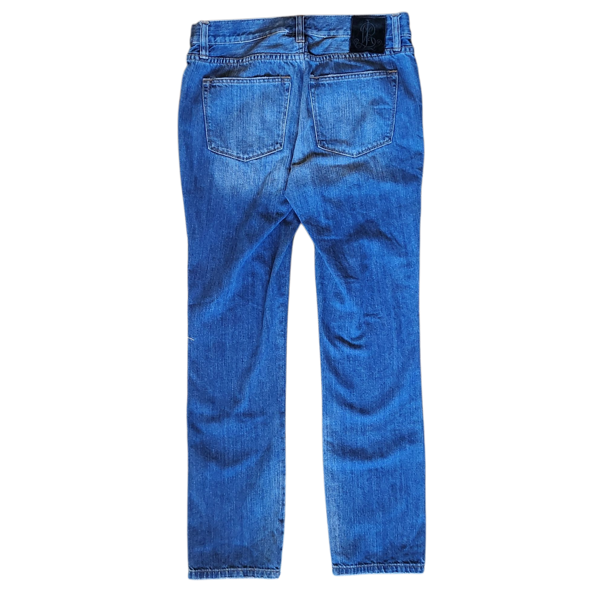 Light wash denim jeans by Ralph Lauren. Gold Paisley embroidery on each side and velvet Ralph Lauren patch on the back.