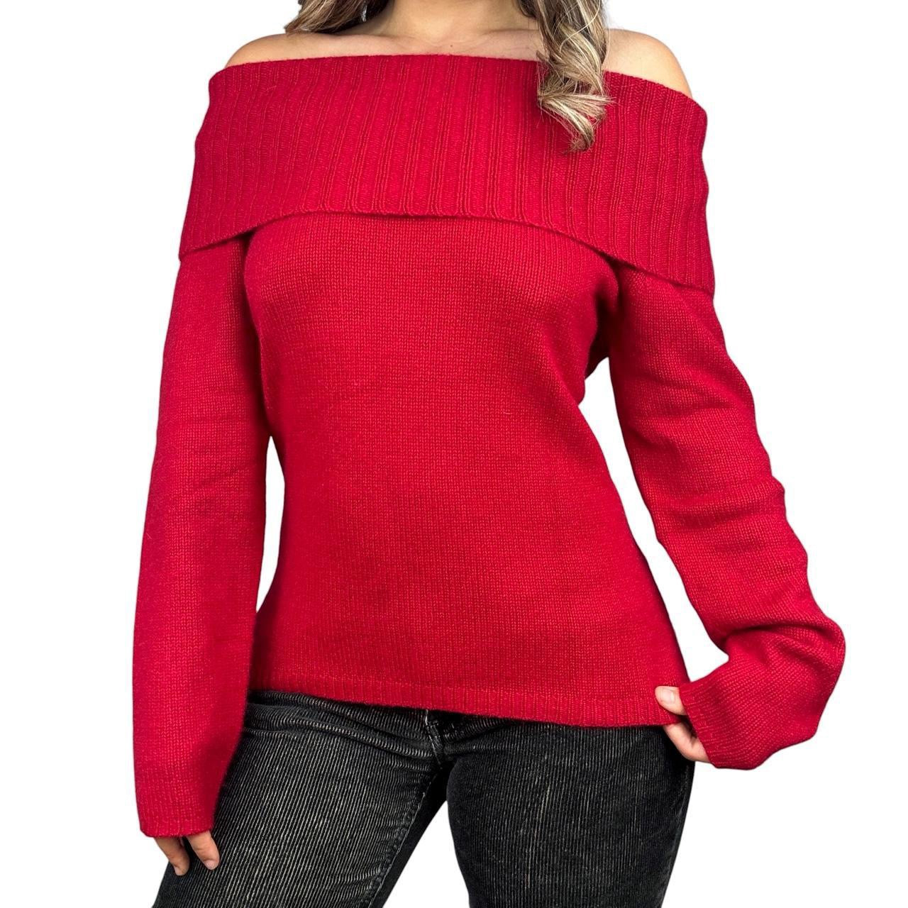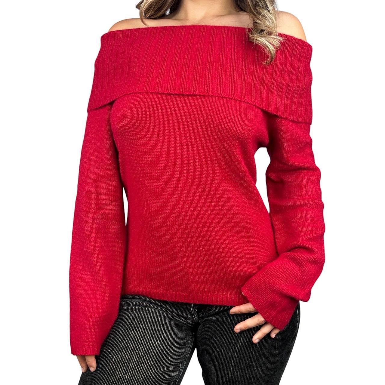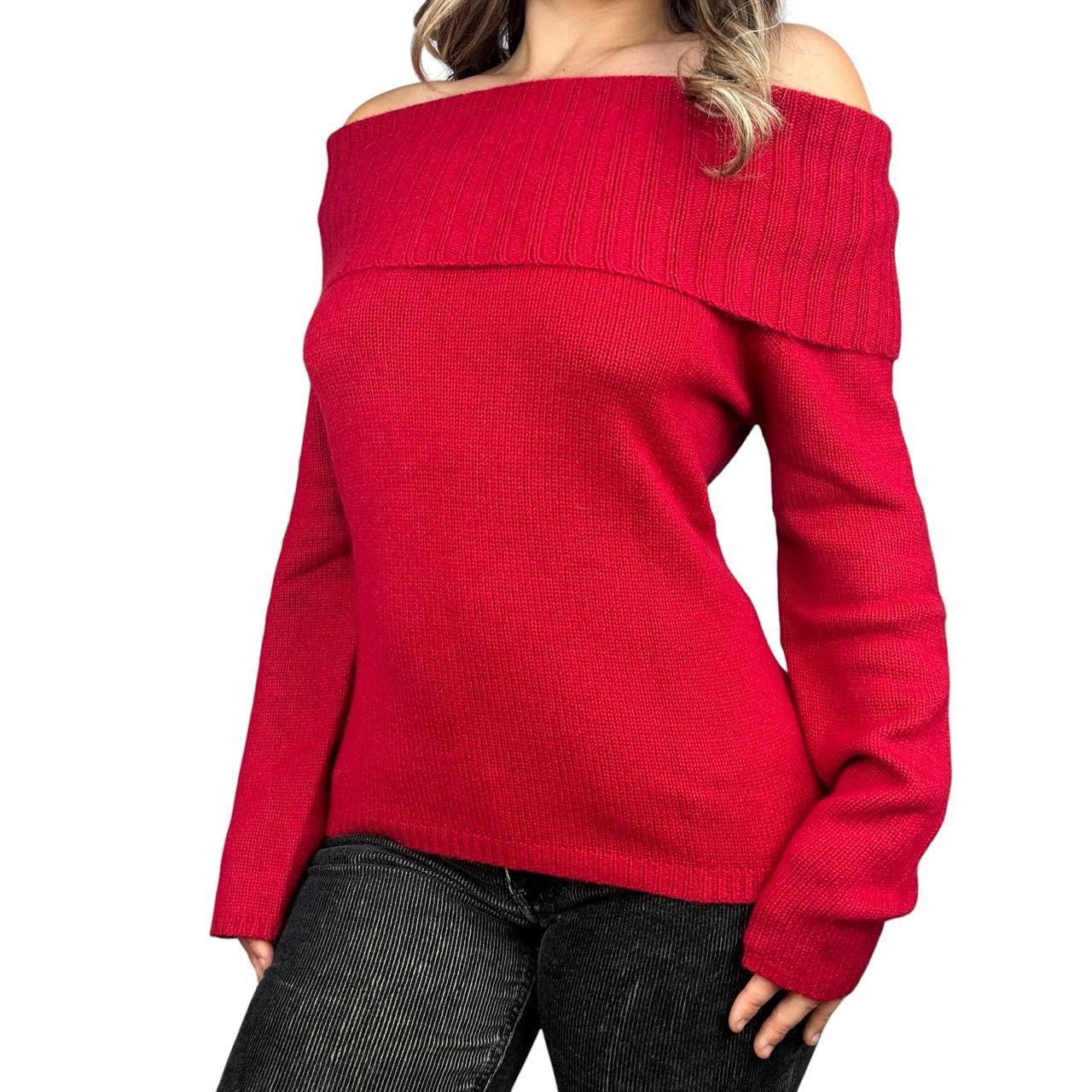 Vintage red cashmere off the shoulder sweater!