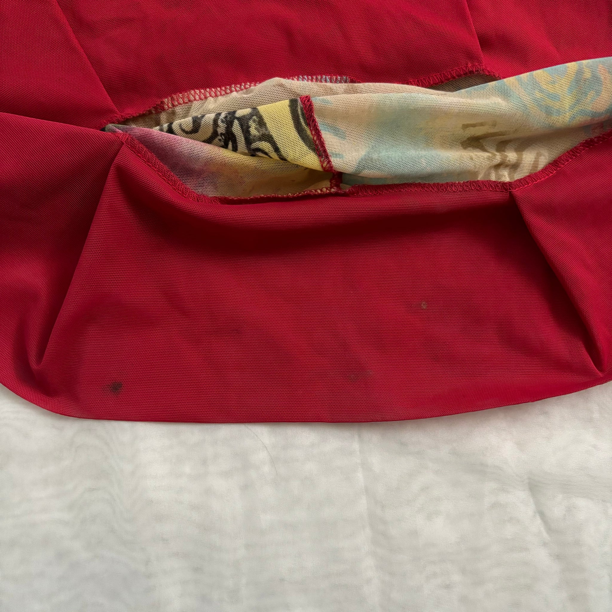 - Has small stains at the hem