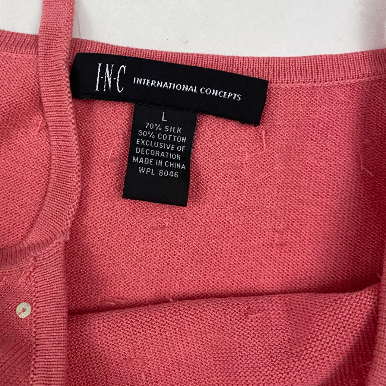 2000s pink embellished sequin knit cami. has adjustable straps.