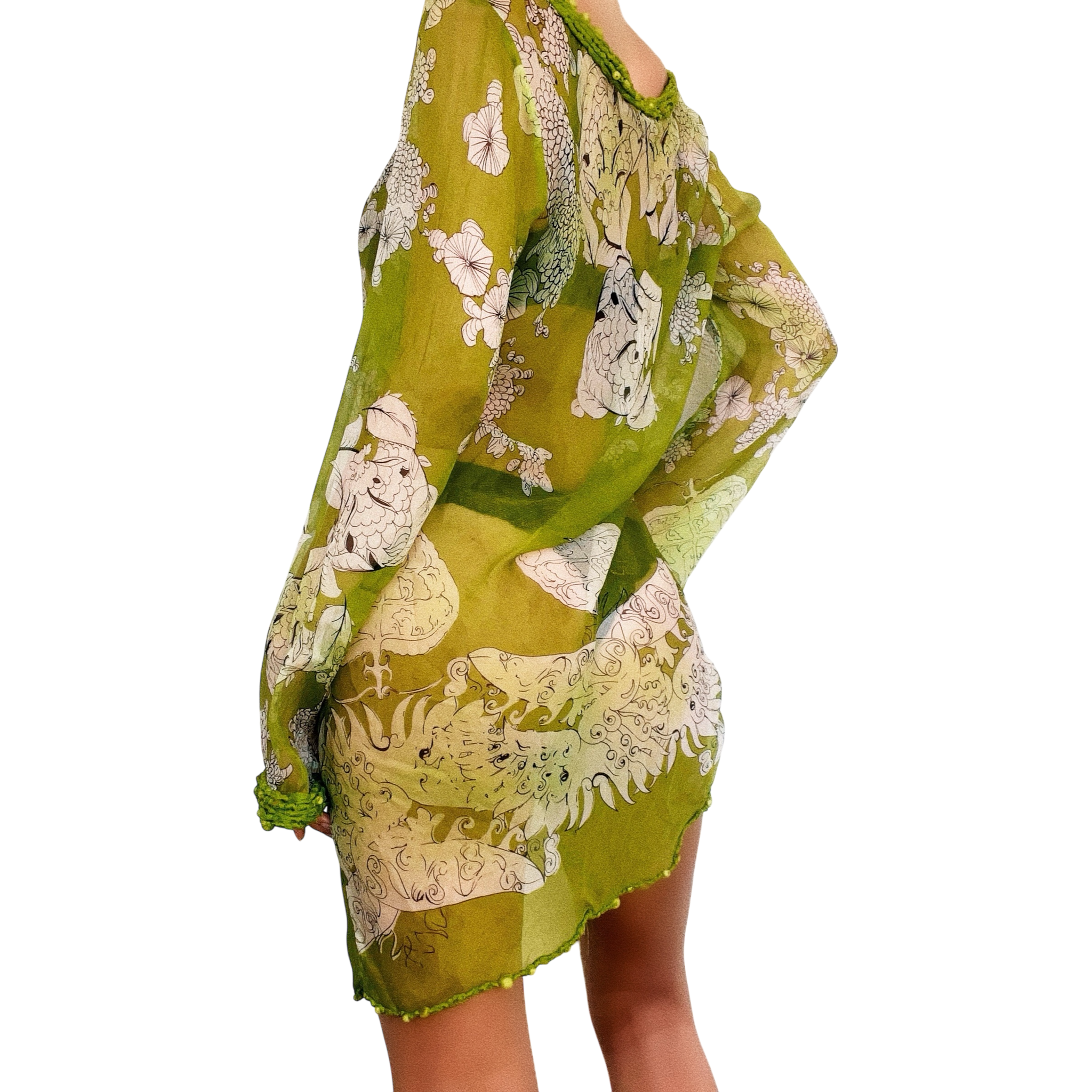 Sheer Silk Lime Green Mini Dress (S)