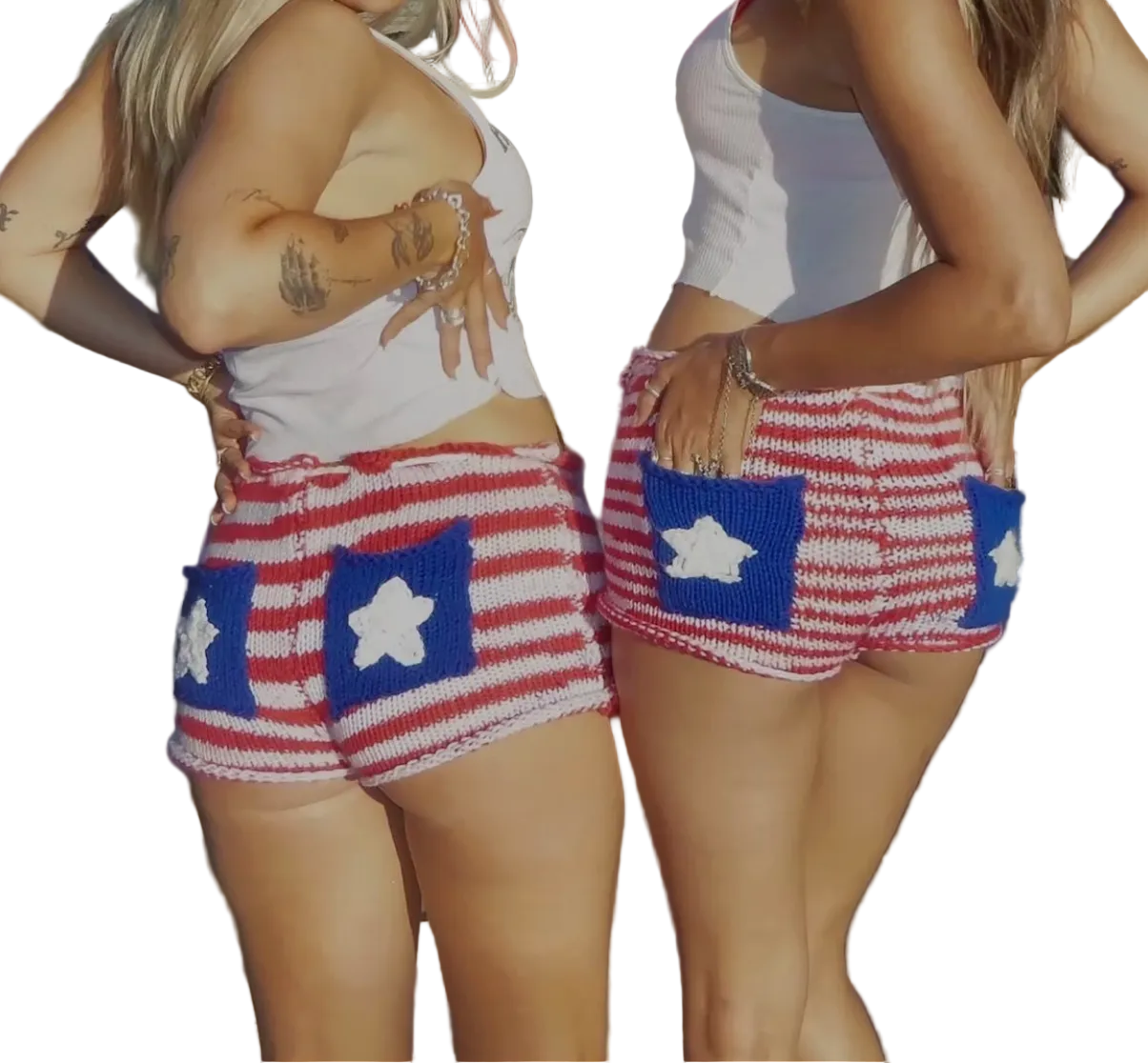 The Star Americana shorts are hand-knit and composed of a stripe pattern and features hand stitched star pockets.