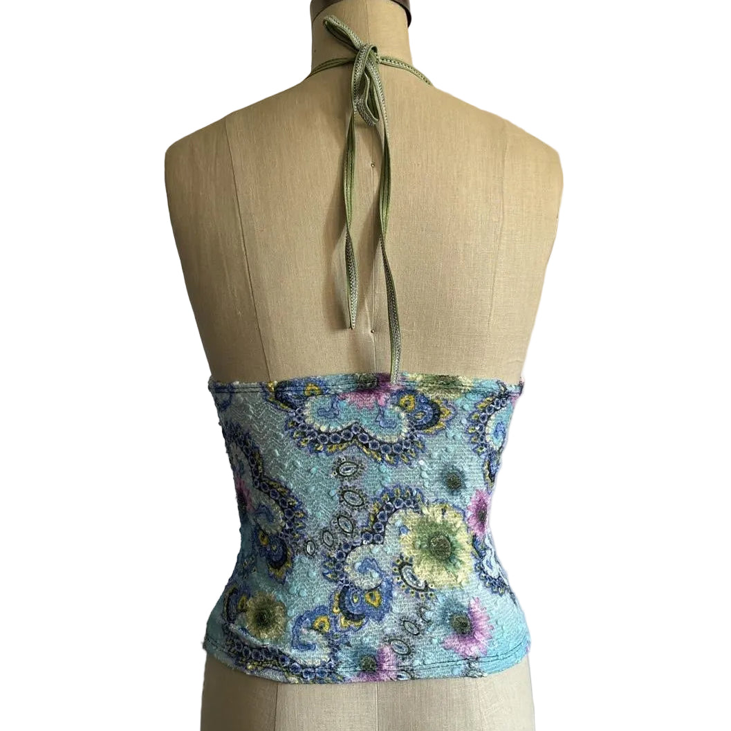 This top is a fairy girls dream with beaded element and sequin flowers. The top is a perfect vacation/ going out top. Definitley a show stopper ! These tops are hand beaded and will all be slightly unique !